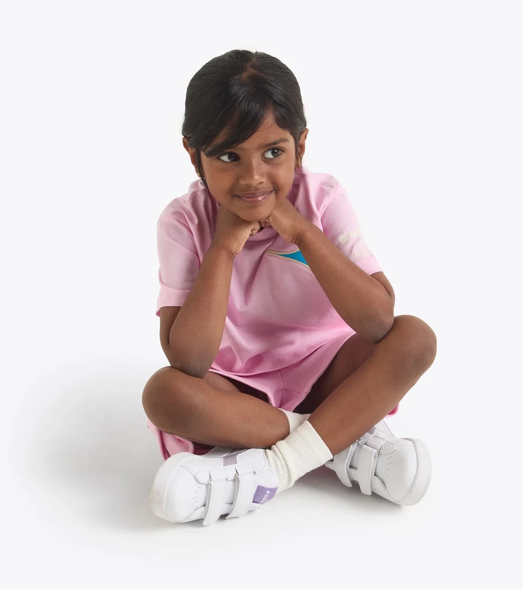 Dai banchi di scuola all’azione. Con questo completo sportivo coordinato, le piccole atlete saranno subito pronte per dedicarsi al loro sport preferito. L’outfit è minimal, ma i dettagli sono curati: t-shirt boxy e pantaloncini con coulisse e logo a contrasto.