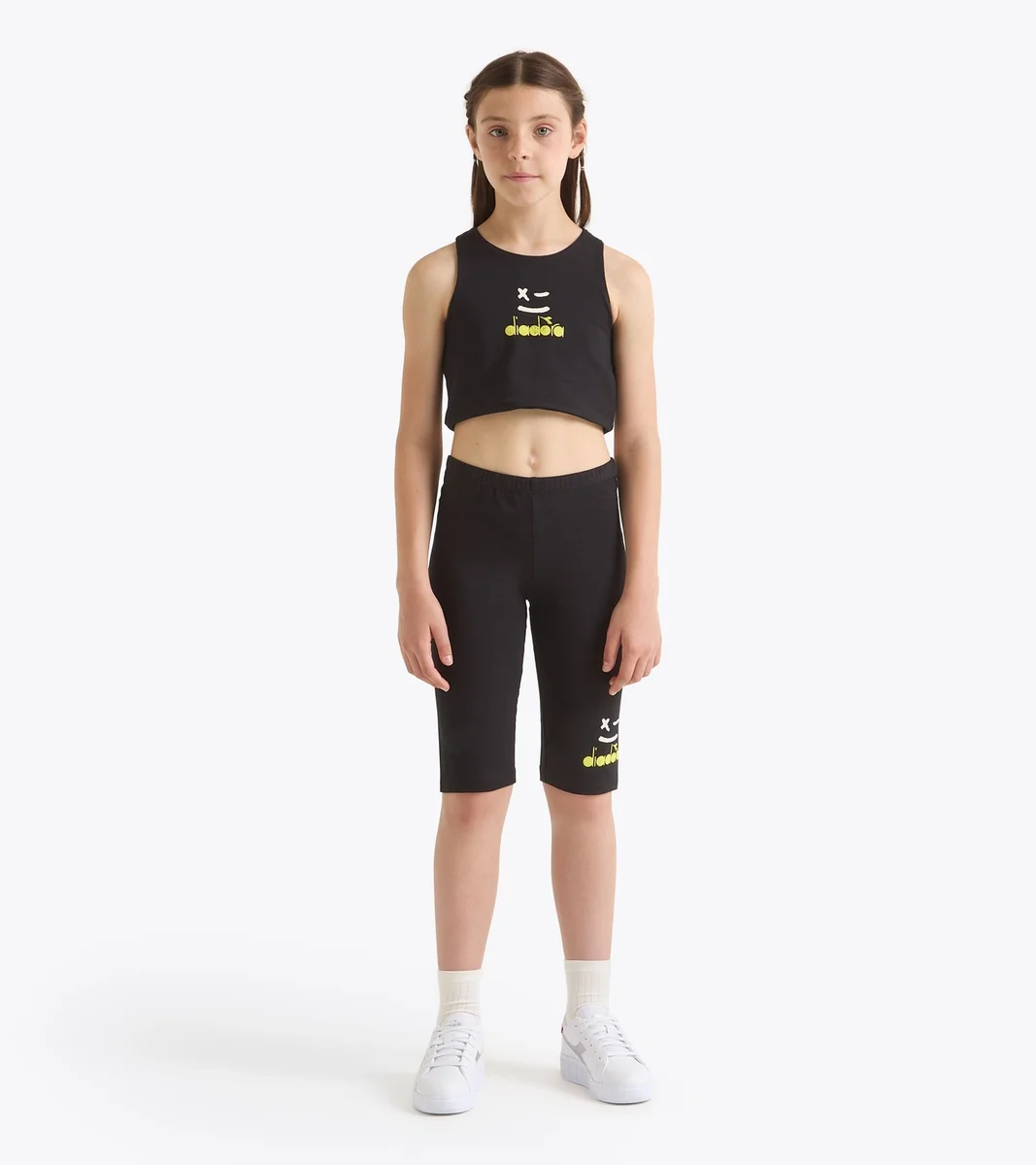 Con questo completo sportivo, le giovani atlete possono correre e giocare con la massima libertà di movimento, senza costrizioni. Abbina il top corto ai pantaloncini da ciclista per un look total coordinato e minimal, oppure mixa e abbina i capi per creare nuovi look.