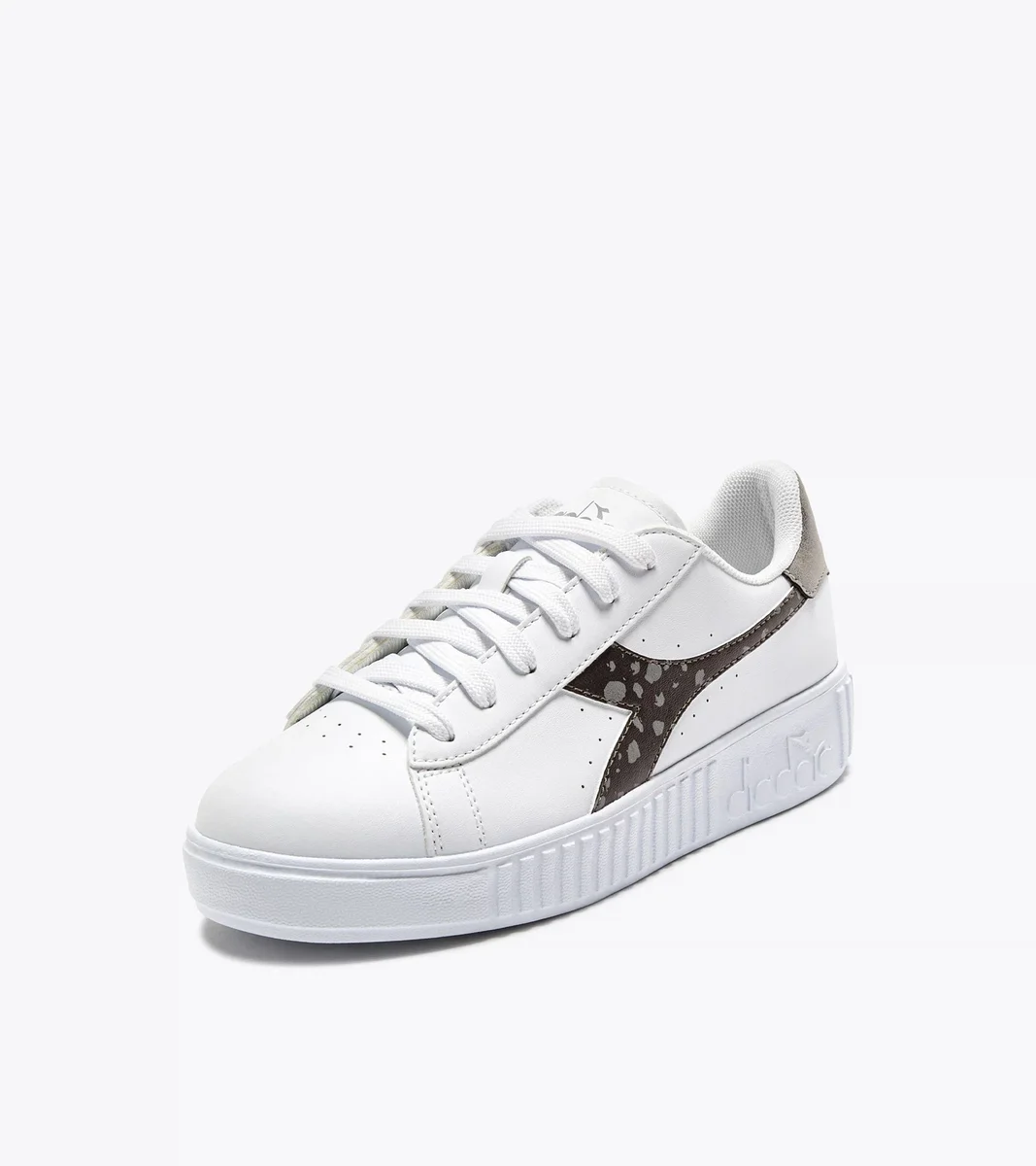 Una stampa ispirata ai crateri incontra dettagli laminati che conferiscono a queste classiche sneakers bianche un bagliore completamente nuovo. La suola con plateau? Quel tocco intramontabile che rende Game Step iconica.