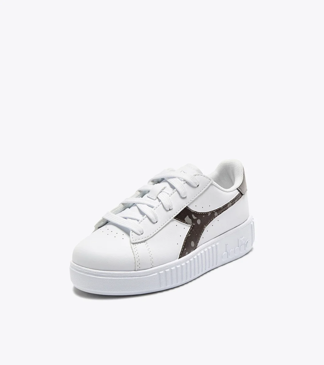 Una stampa ispirata ai crateri si unisce a dettagli laminati che conferiscono a queste classiche sneakers bianche un nuovo splendore. La suola con plateau? Un classico intramontabile che rende Game Step un must, anche per le più giovani trendsetter.