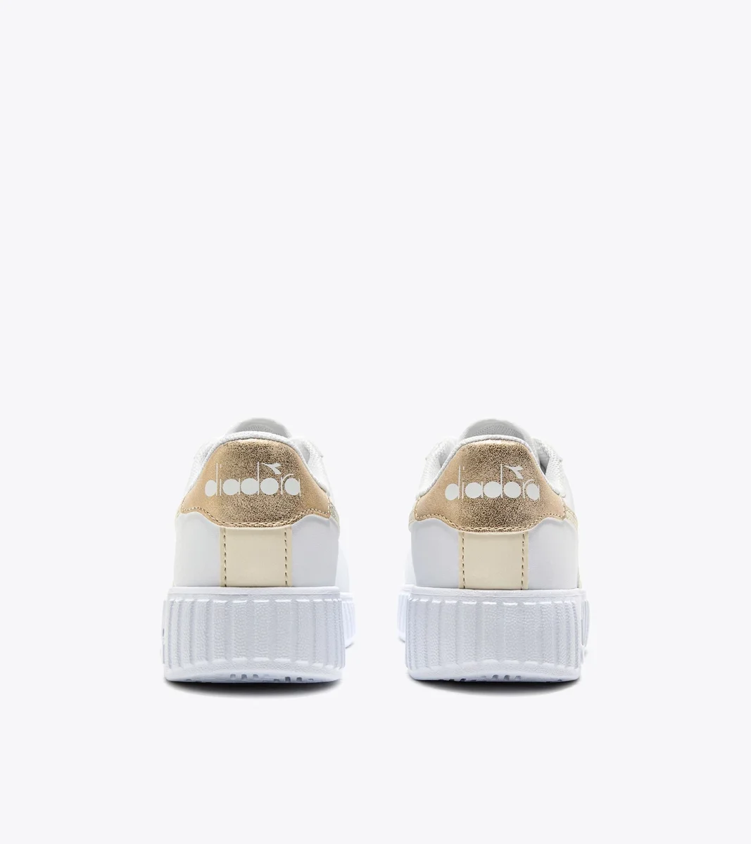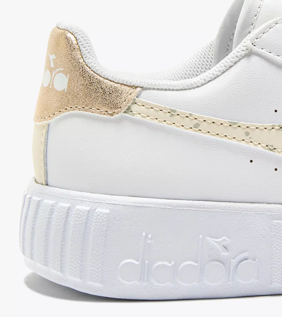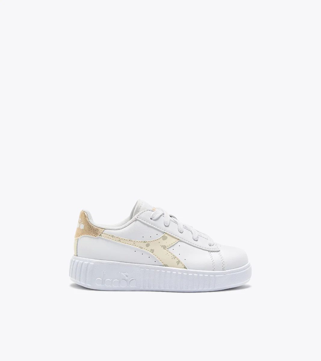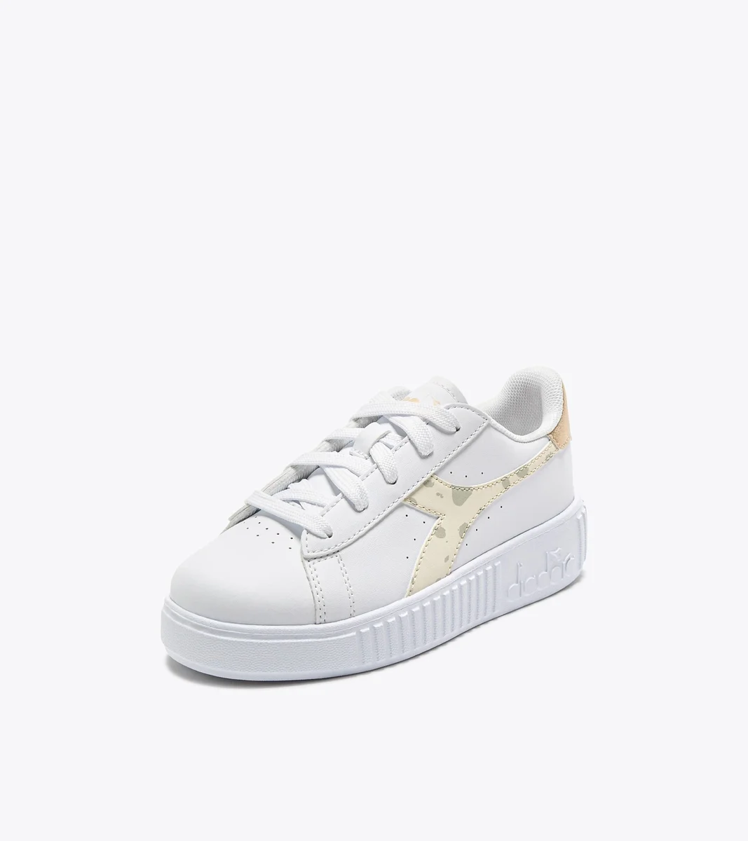 Una stampa ispirata ai crateri si unisce a dettagli laminati che conferiscono a queste classiche sneakers bianche un nuovo splendore. La suola con plateau? Un classico intramontabile che rende Game Step un must, anche per le più giovani trendsetter.