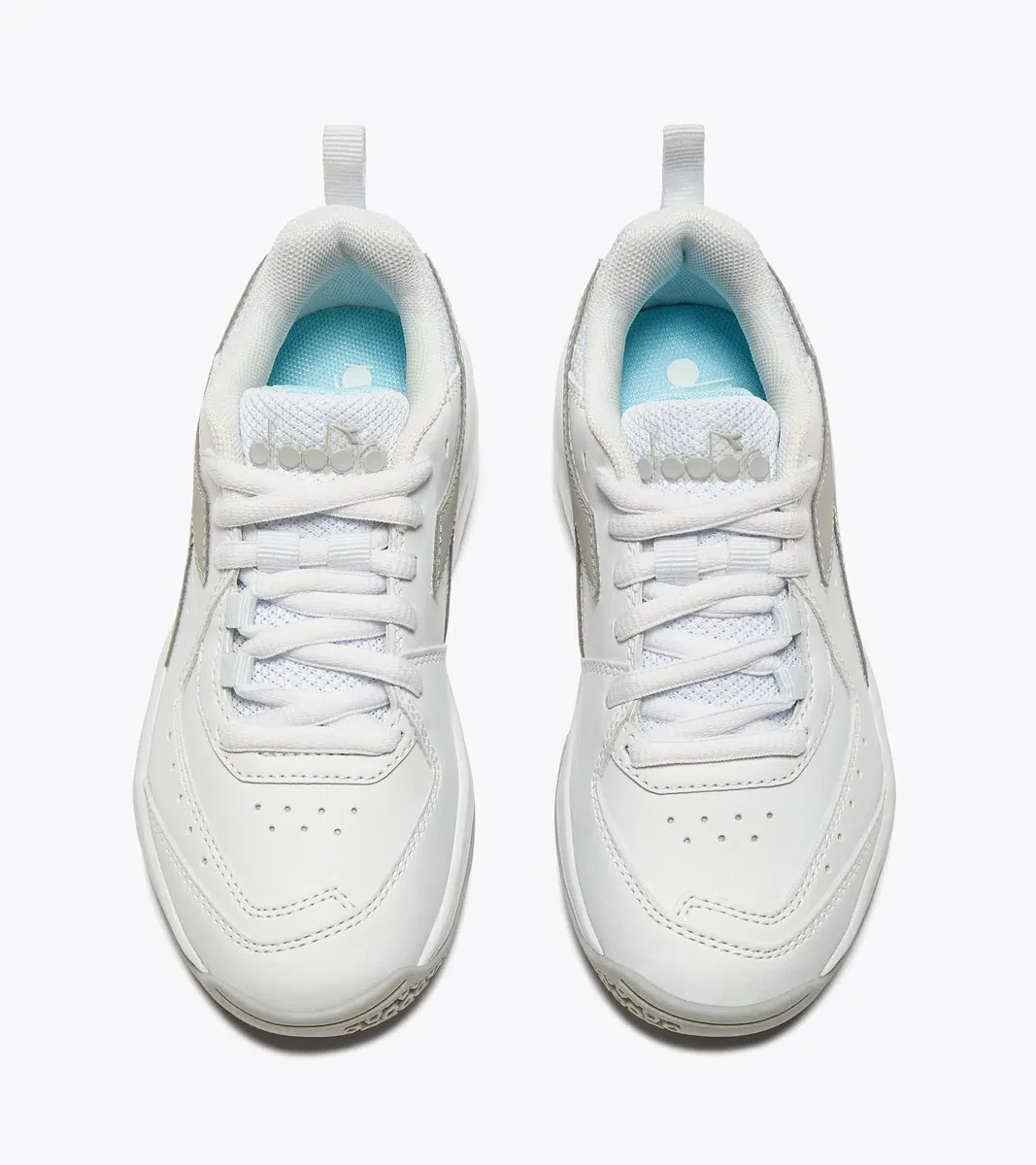 S. Challenge 5 SL JR è una scarpa da tennis unisex progettata per i giovani tennisti principianti. Realizzata con suola in TPR, tomaia in SuprellTech e mesh, jersey di cotone e schiuma EVA stampata, intersuola in schiuma EVA stampata con C.C.B. Disponibile in due colori.