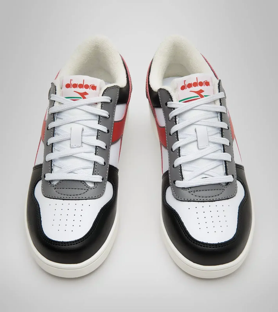 Iconica scarpa da ginnastica di Diadora, la Magic proviene direttamente dalla sezione basket del nostro catalogo del 1985. Creata come evoluzione della Mi Basket, presenta tomaia in pelle di vitello, intersuola e soletta ammortizzanti e speciale chiusura in velcro sulla parte alta.