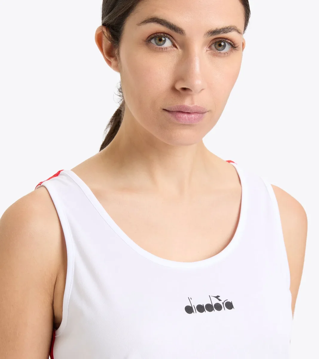 La canotta da tennis Core presenta spalline larghe per chi ama la vestibilità ampia. Dettaglio a contrasto effetto tulle sul retro in tutte le versioni di colore.