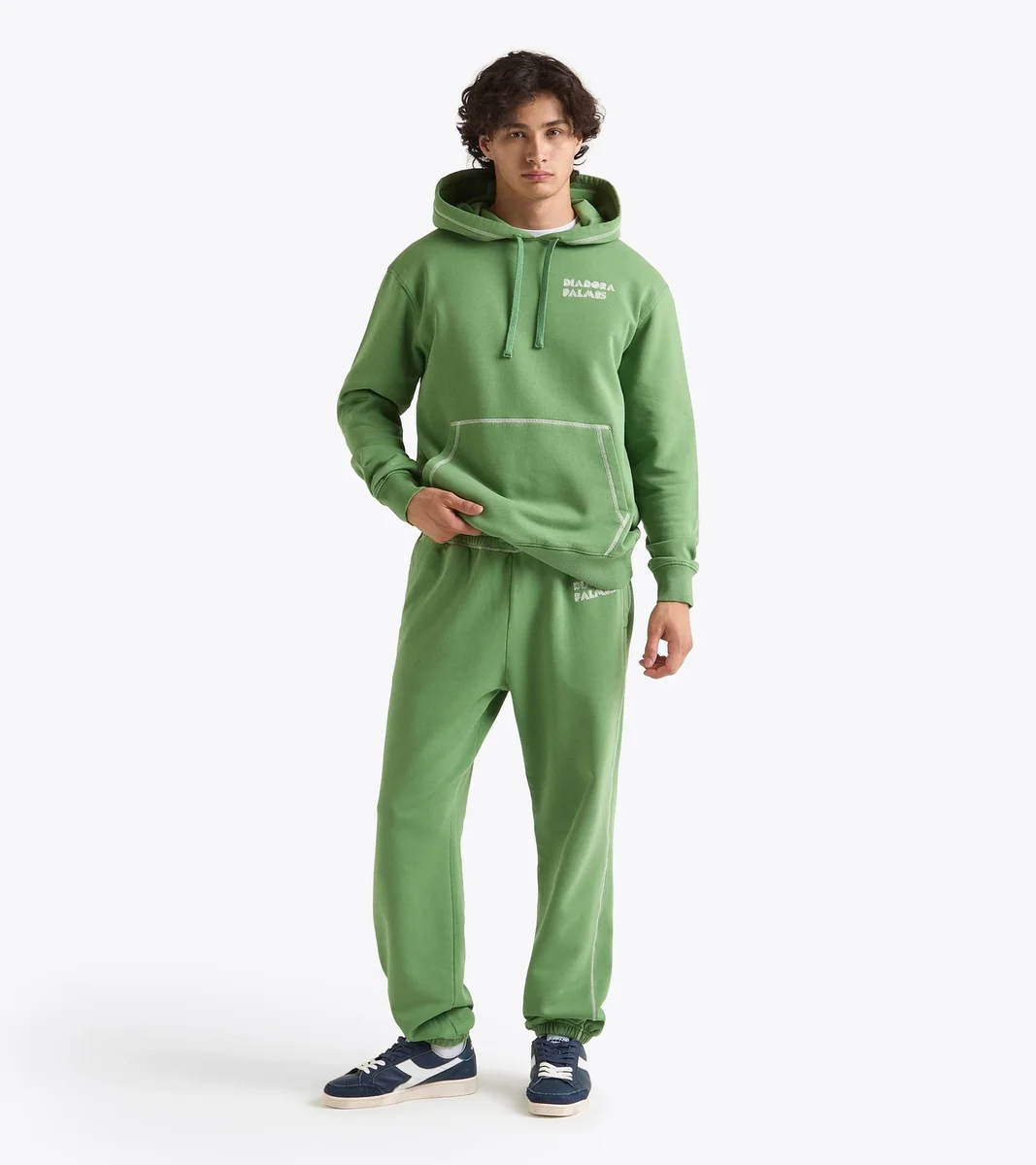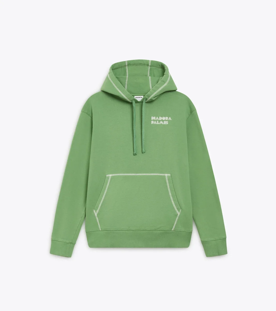 La felpa con cappuccio Legacy porta l’estetica del campo da tennis sulla strada e oltre. Realizzata in felpa di cotone spazzolato al 100%, ha un taglio dal profilo intramontabile e rifiniture con cuciture a contrasto, che richiamano il ricamo “Palmes Diadora” e il logo sul retro. La tasca a marsupio oversize presenta lo stesso trattamento sartoriale. La finitura stone wash conferisce a ogni capo una patina consumata e unica, mentre un’etichetta jacquard personalizzata suggella la collaborazione. La nuova collezione Legacy di Nikolaj Hansson, fondatore di Palmes. La collezione si ispira agli archivi storici di Diadora, alla storia dello sport e al design dei capi Made in Italy. Felpa con cappuccio in felpa spazzolata.p>