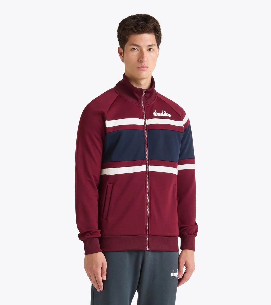 Riscrivi le regole dell’athleisure contemporaneo. La Jacket 80s ripropone gli elementi iconici delle classiche giacche da tuta: bande a contrasto audaci, collo e polsini a costine. Completa di zip integrale e tasche frontali, combina funzionalità e comfort senza sforzo.