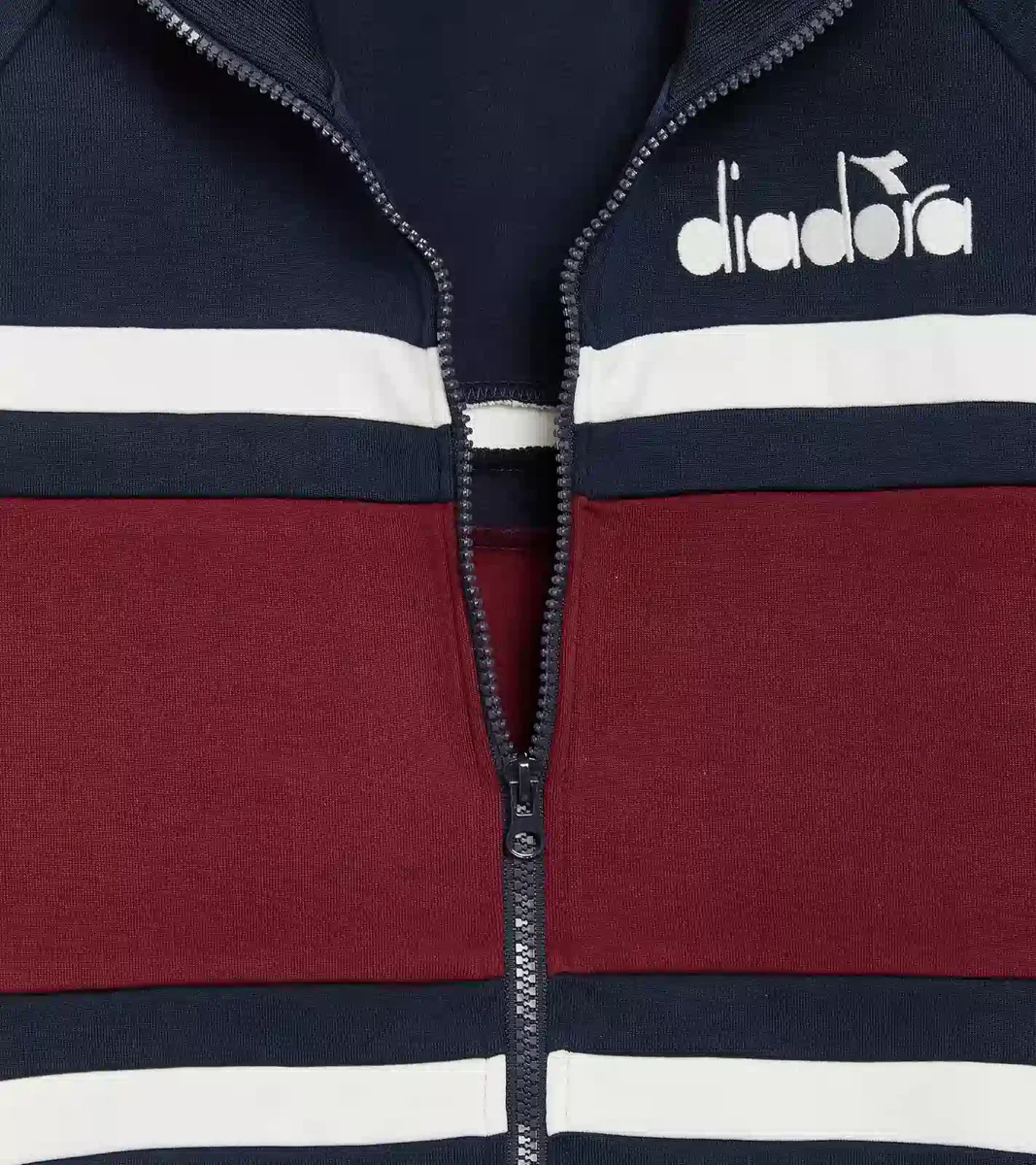 Riscrivi le regole dell’athleisure contemporaneo. La Jacket 80s ripropone gli elementi iconici delle classiche giacche da tuta: bande a contrasto audaci, collo e polsini a costine. Completa di zip integrale e tasche frontali, combina funzionalità e comfort senza sforzo.