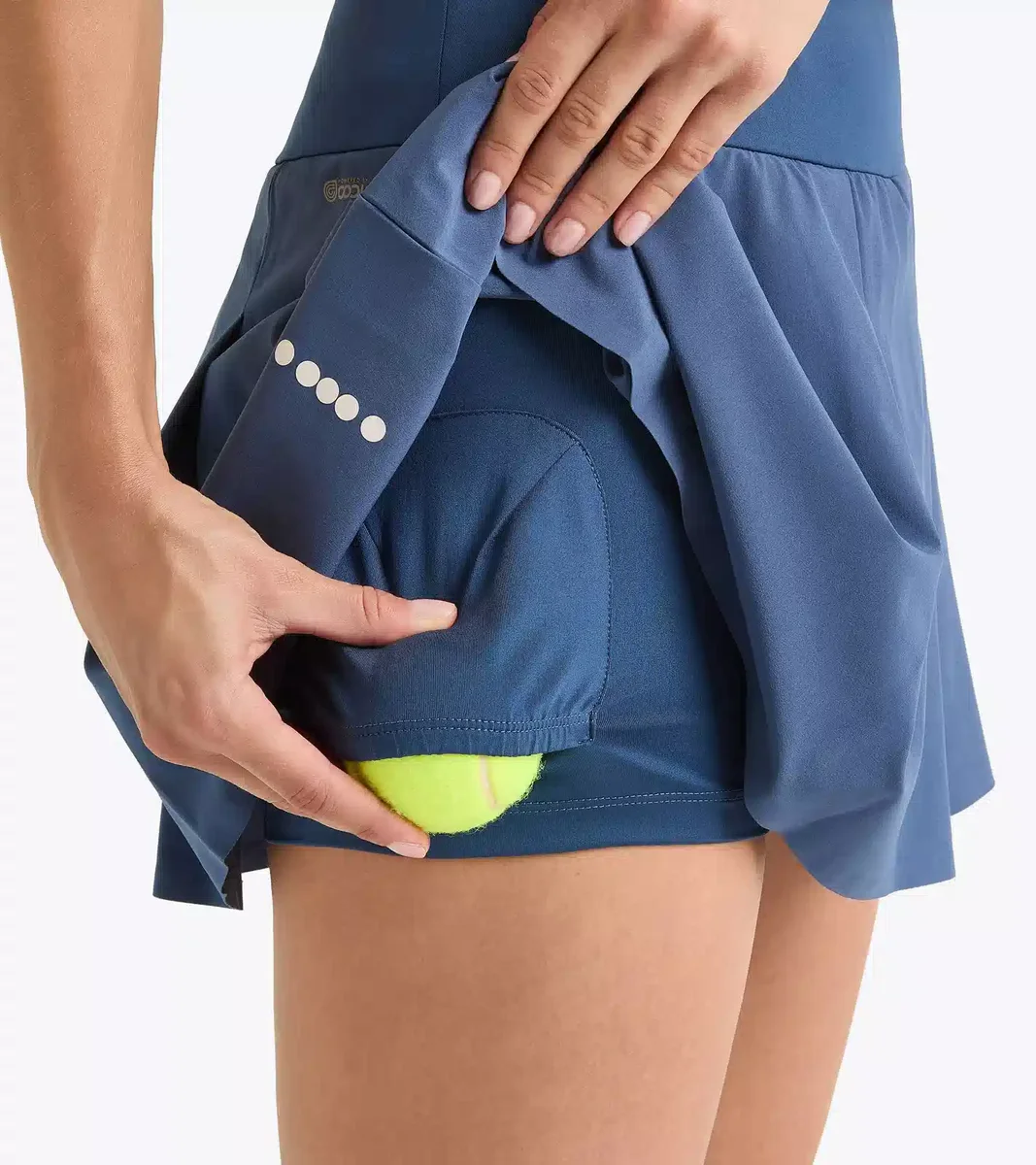 Questa è la gonna performante che fa per te, progettata con pieghe nitide e realizzata in tessuto Coolcore riciclato. La composizione innovativa aiuta a regolare la temperatura corporea, dal riscaldamento al match point. Riponi le palline da tennis negli shorts integrati sotto le pieghe.