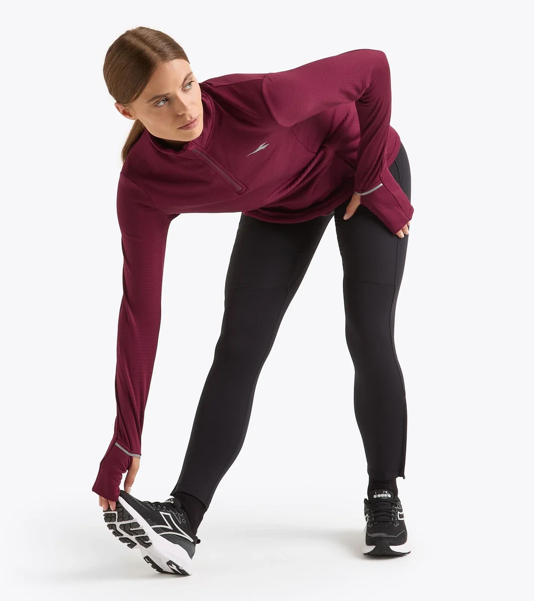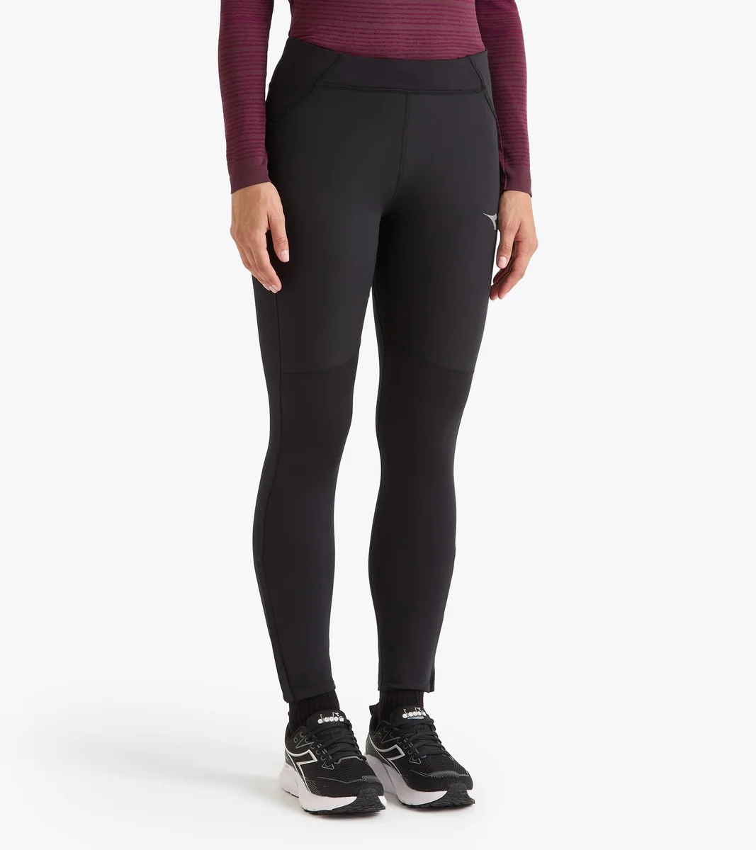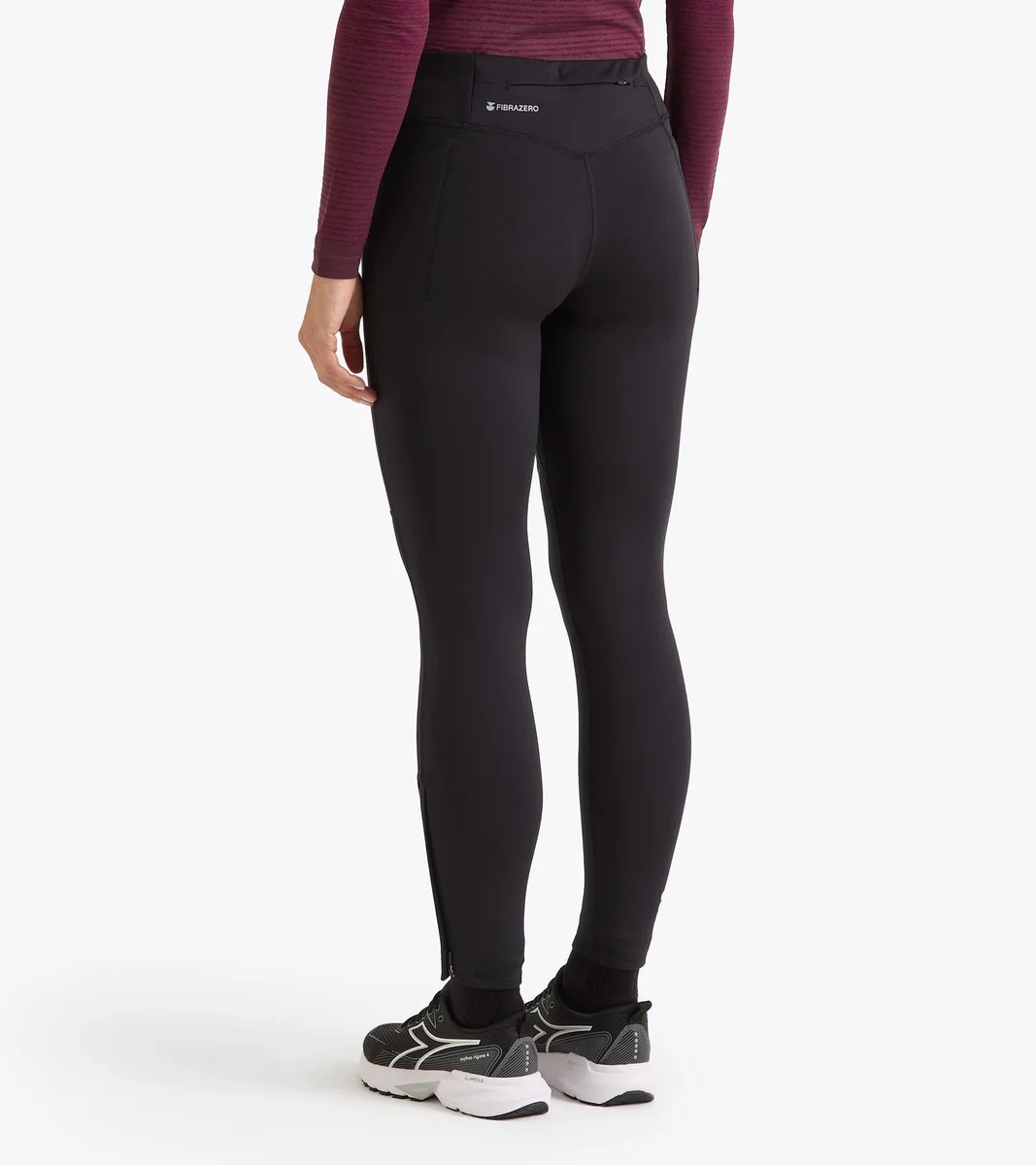 Leggings invernali aderenti, con interno morbido spazzolato e pannello antivento posizionato strategicamente per evitare di aggiungere volume; tasche laterali e tasca posteriore con zip