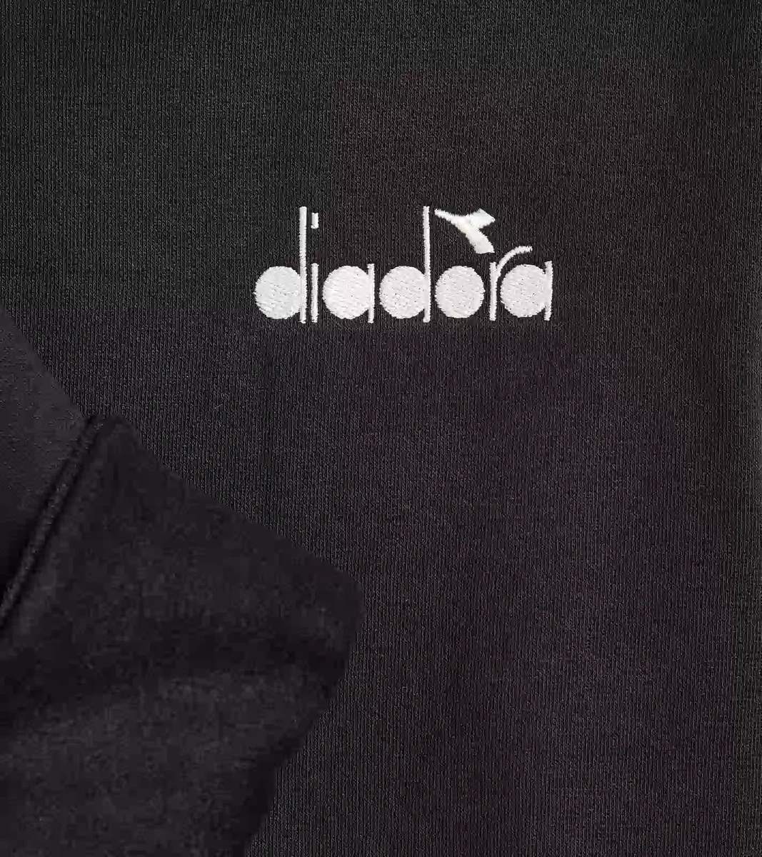 Logo Diadora ricamato, coulisse personalizzata ispirata all’abbigliamento da trail e occhielli in metallo. Realizzata in 70% morbido cotone spazzolato e 30% poliestere riciclato.