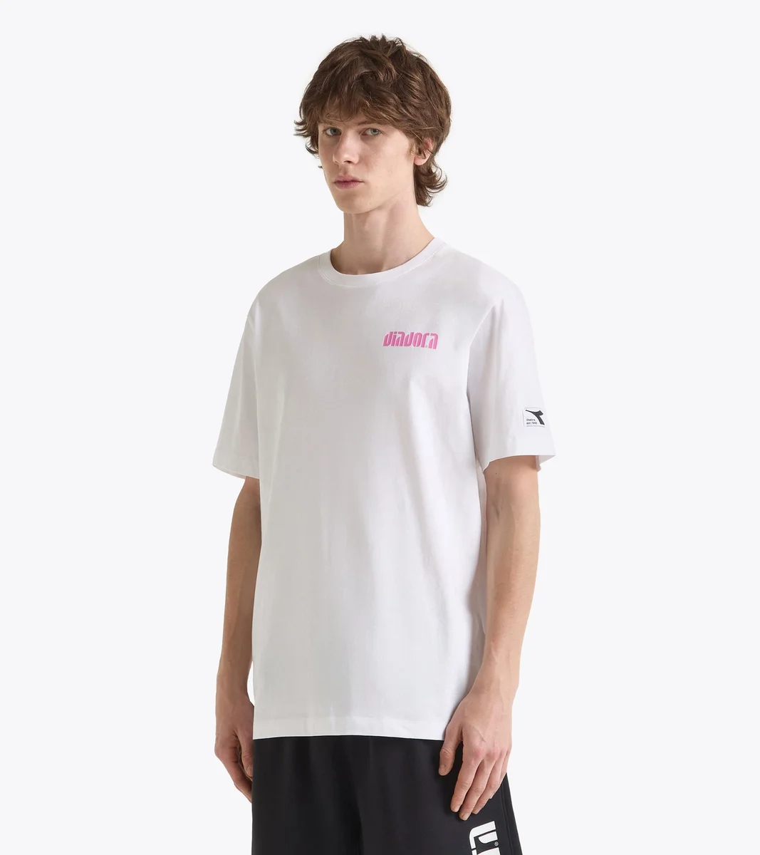Questa t-shirt unisex, realizzata in morbido jersey di cotone, è il massimo in termini di versatilità. Con la sua vestibilità regolare, passa senza soluzione di continuità dall’allenamento alle uscite informali, aggiungendo sempre quel tocco di stile in più.
