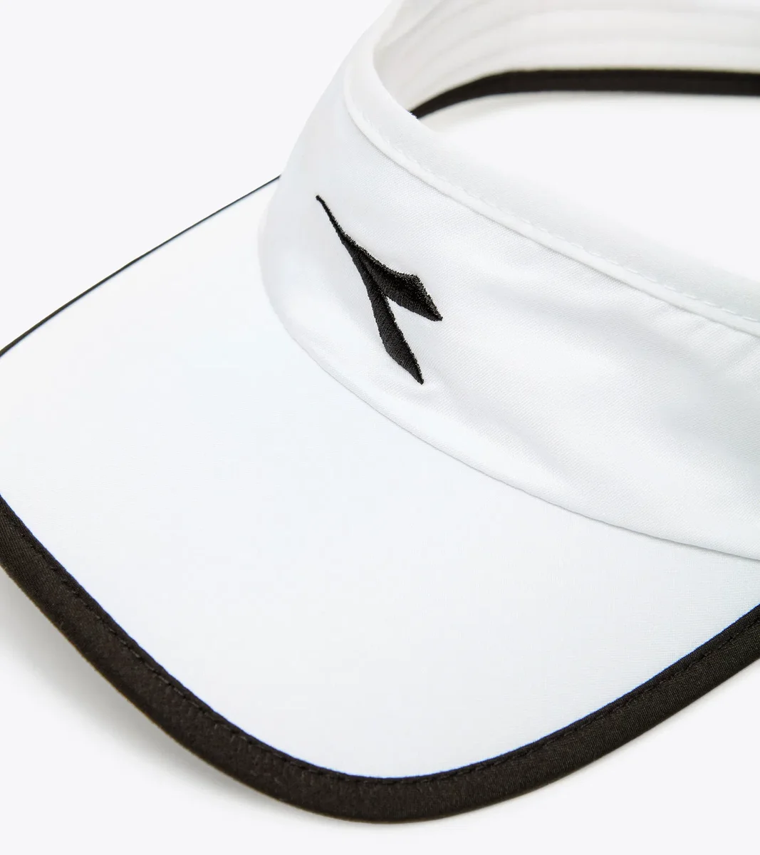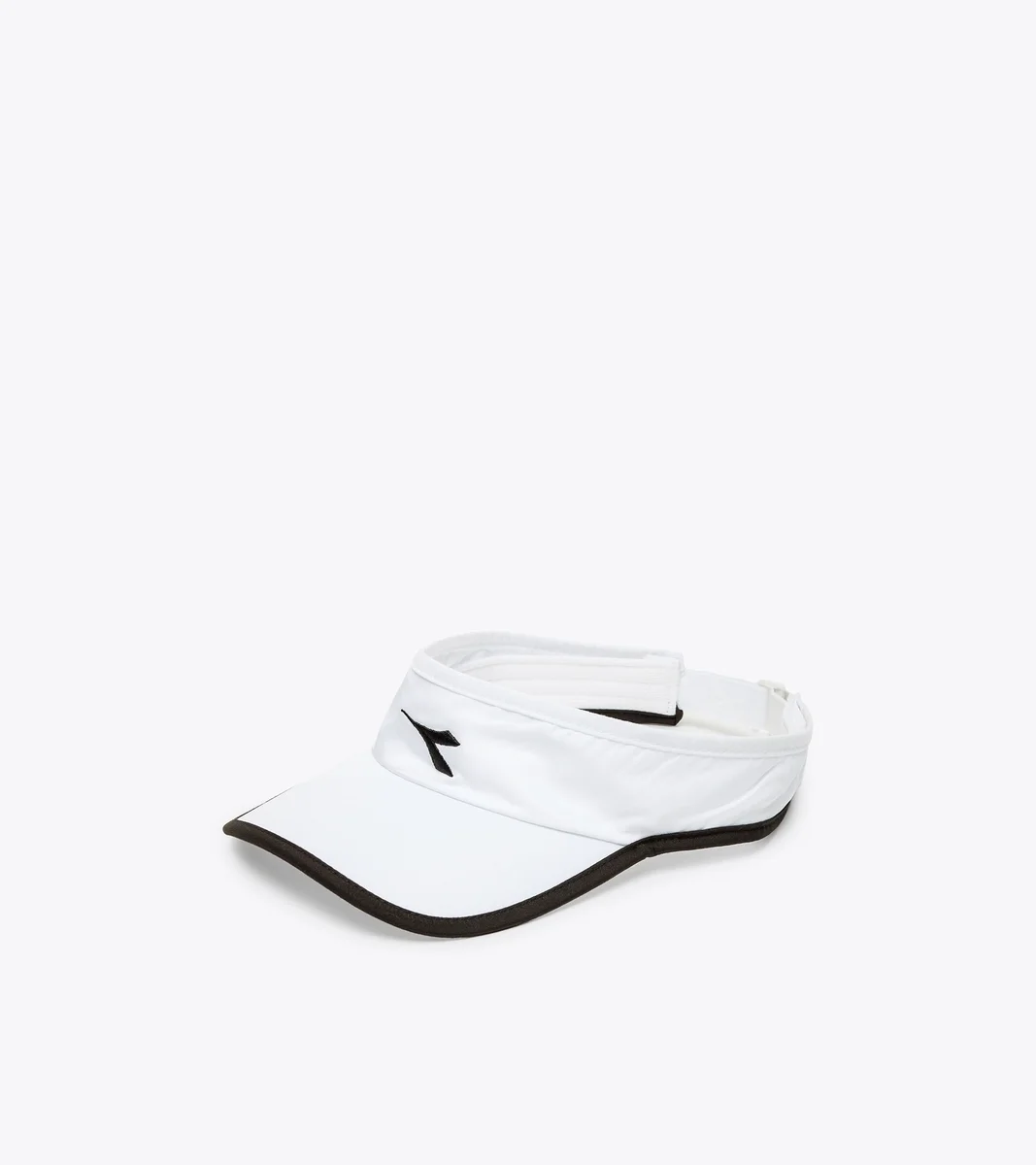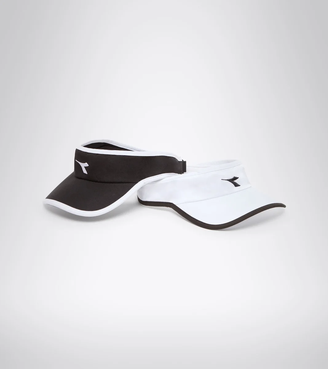 Visiera da tennis unisex realizzata in microfibra leggera con bordi a contrasto, fascia frontale traspirante e larghezza regolabile.