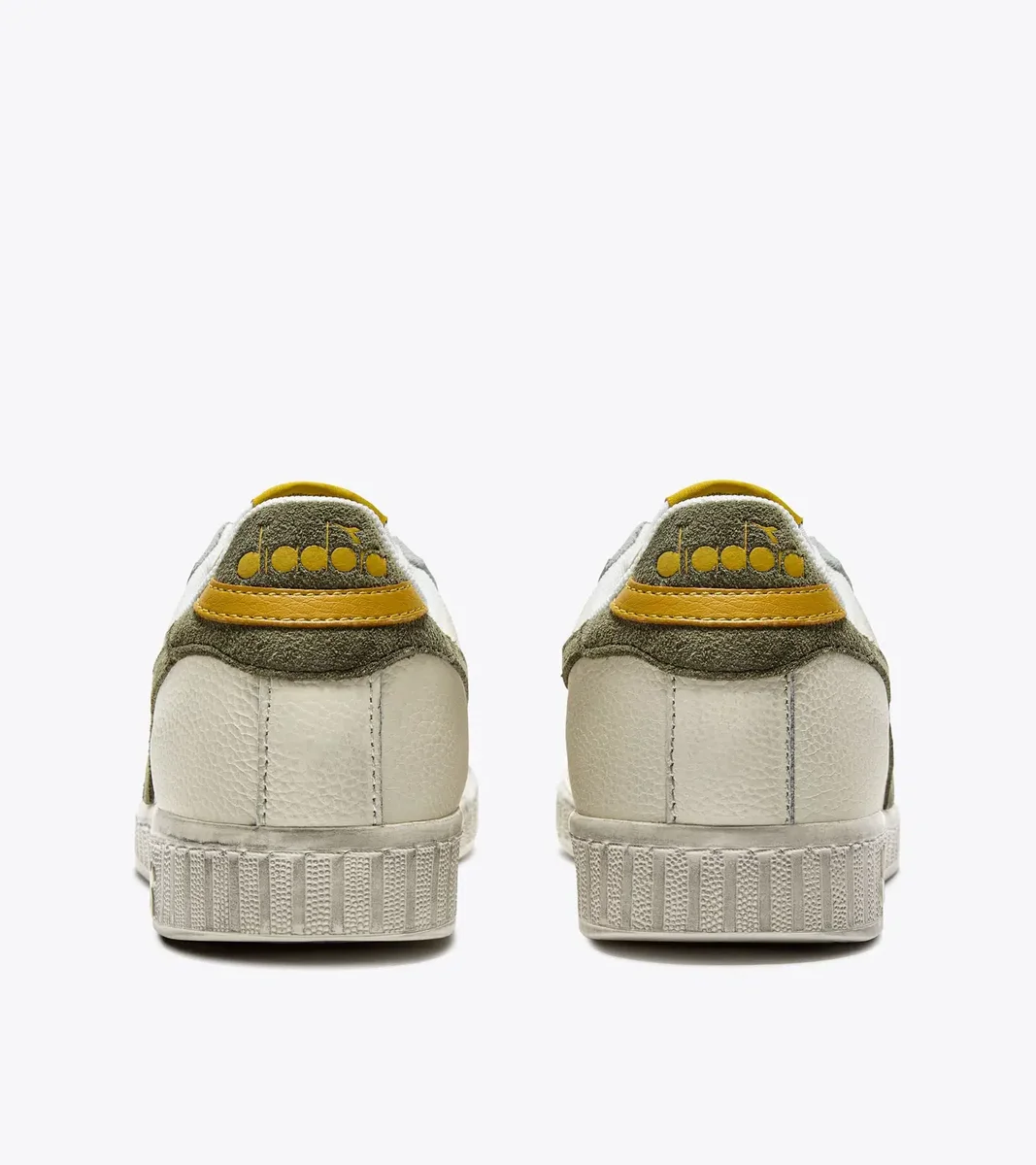Le Game devono la loro popolarità alla loro estetica retrò, ispirata alle classiche scarpe da tennis Diadora. Realizzate in pelle bianca, la ceratura finale crea un caratteristico effetto consumato che esalta il fascino della pelle. I dettagli sono realizzati in pelle scamosciata, aggiungendo dinamismo alla scarpa e confermando il suo stile iconico. E se preferisci una sneaker low-top, scopri le Game nella loro variante high-cut!
