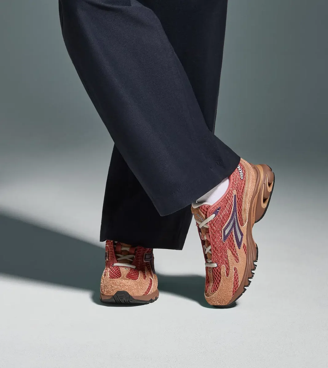 Le Mythos Propulsion 280 Bacca presentano un contrasto tra pelle scamosciata pelosa e mesh, con dettagli in TPU: l’iconico effetto stratificato che cattura tutto lo spirito delle sneakers Y2K.
