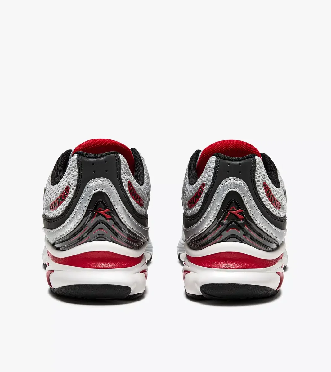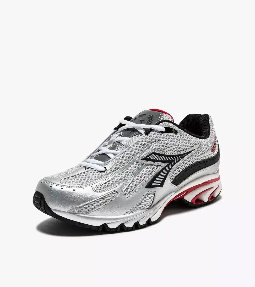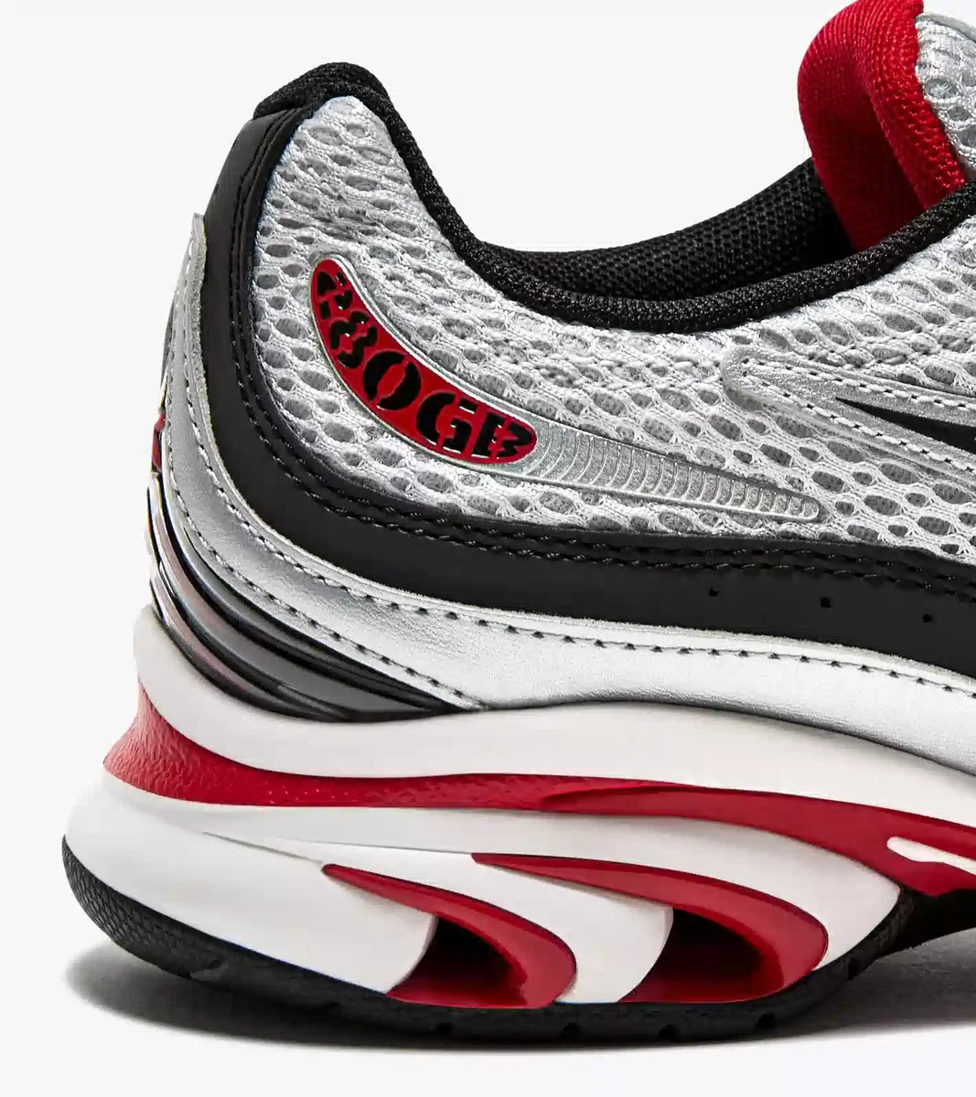 Mythos Propulsion 280 è la scarpa sportiva unisex con tomaia in mesh e ecopelle caratterizzata da finiture metalliche, dettagli riflettenti e trasferimento in TPU. La foglia di alloro sulla linguetta e le finiture sulla tomaia celebrano la vittoria sportiva e le fiamme della torcia olimpica.