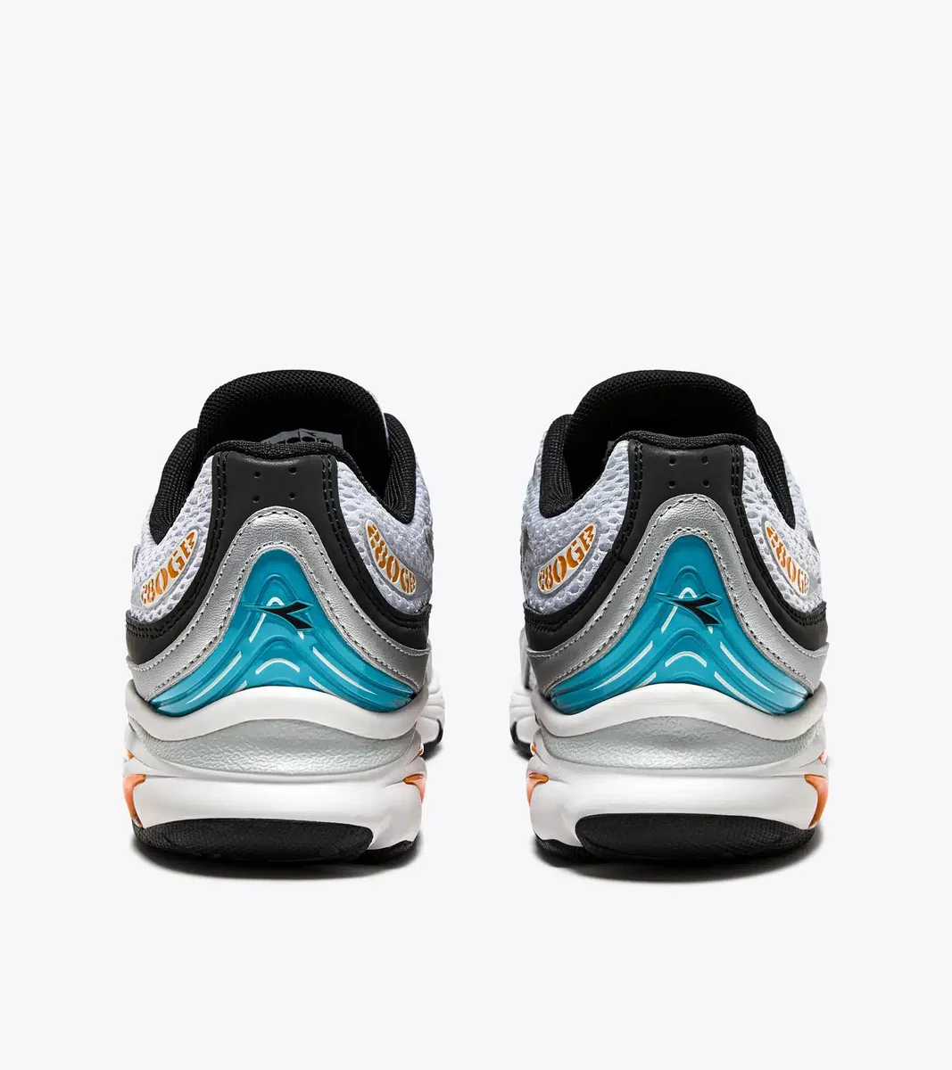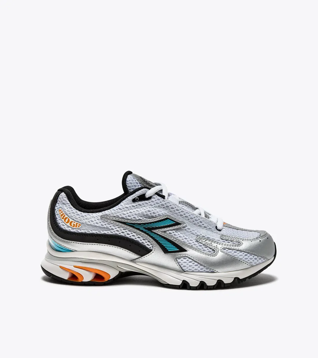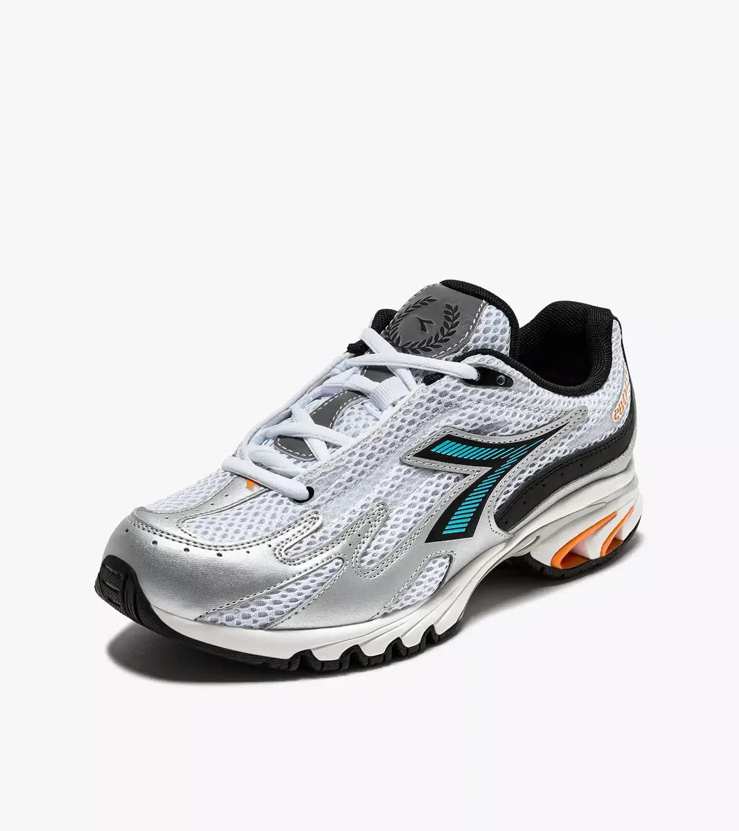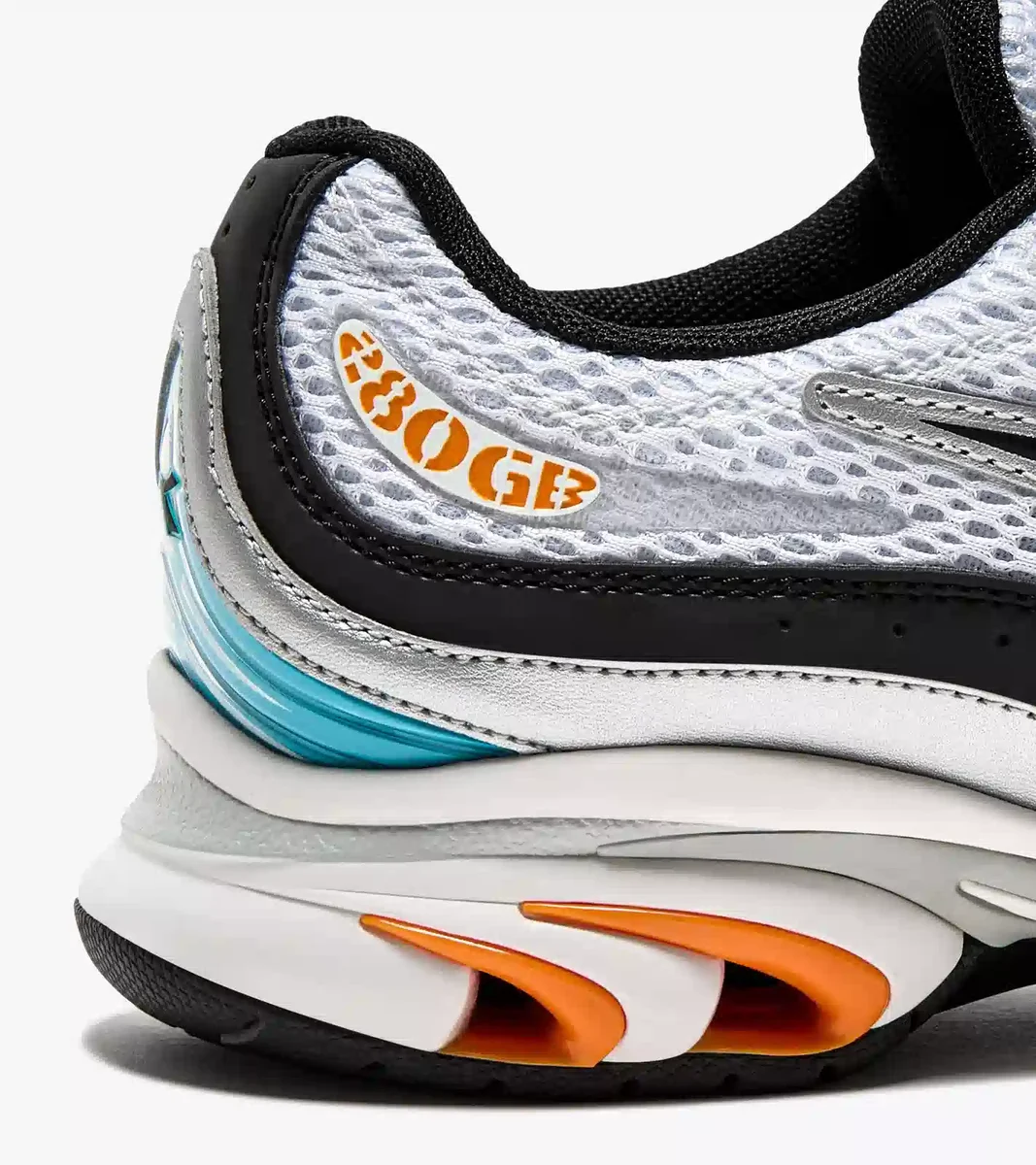 Mythos Propulsion 280 è la scarpa sportiva unisex con tomaia in mesh e ecopelle caratterizzata da finiture metalliche, dettagli riflettenti e trasferimento in TPU. La foglia di alloro sulla linguetta e le finiture sulla tomaia celebrano la vittoria sportiva e le fiamme della torcia olimpica.