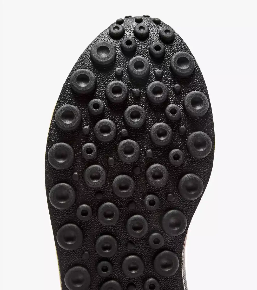 La suola rimane fedele al design originale, offrendo lo stesso solido supporto al piede. La tomaia, invece, è stata ripensata con un look più moderno, che conferisce un tocco urbano. Gli strati in pelle scamosciata avvolgono la scarpa e creano un audace gioco di texture, portando le prestazioni retrò nello streetwear di oggi.