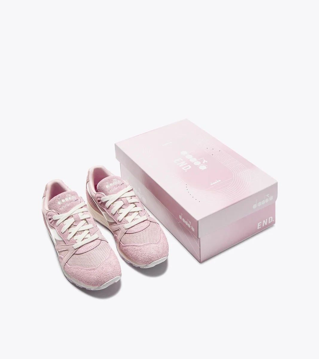 Ispirato ai colori che si creano quando si combinano fragole e panna, lo stile unisce l’estetica running degli anni ’90 e una costruzione di alta qualità. Assemblata a mano in Italia, la N9000 è impreziosita da dettagli raffinati, tra cui strisce laterali rivestite in PVC bianco lucido, suola traslucida con marchio END. personalizzato e tomaia con bordino 3M. Il marchio Diadora occupa un posto d’onore sulla linguetta, mentre il ricamo END. sul tallone aggiunge un tocco di fascino da edizione limitata. A completare il look, una soletta stampata introduce ulteriori elementi del tema delle fragole e le sneakers sono contenute in una scatola da scarpe con marchio congiunto.