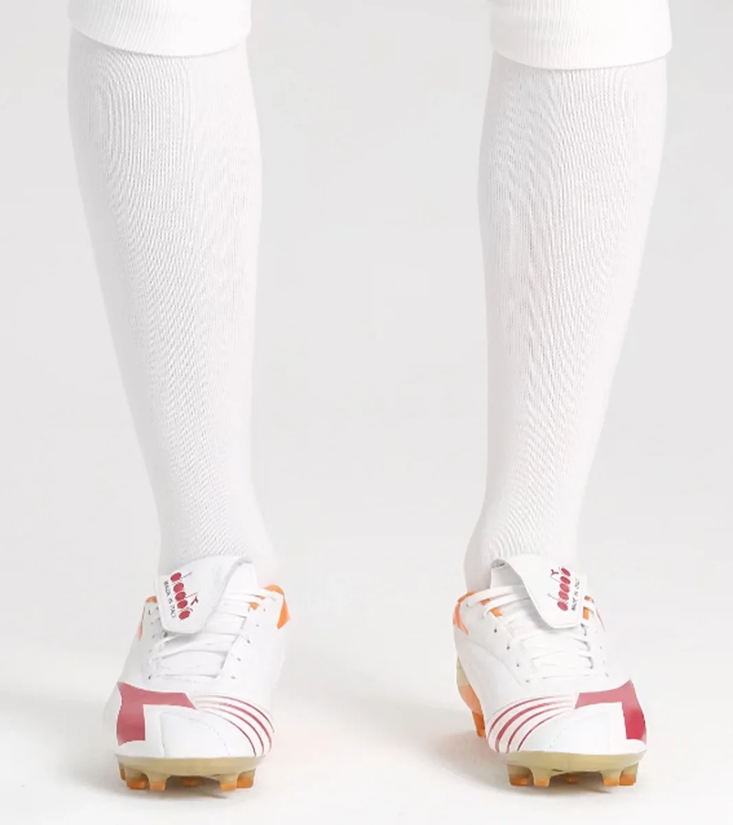 Realizzate in Italia, dalla progettazione alla produzione, queste scarpe da calcio presentano una tomaia in pelle di alta qualità e una linguetta reversibile ispirata agli iconici modelli Diadora indossati dai campioni.