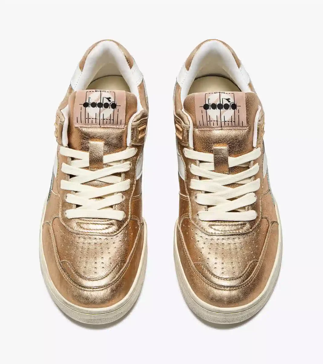 B.560 Metal WN: la versione più sensazionale di questa sneaker. Dai tempi d’oro del tennis alla pelle pregiata laminata in oro. Per evocare ulteriormente il suo passato storico, presenta un trattamento stone wash e una leggera ceratura che ne esaltano le qualità sviluppate nel corso dei decenni.