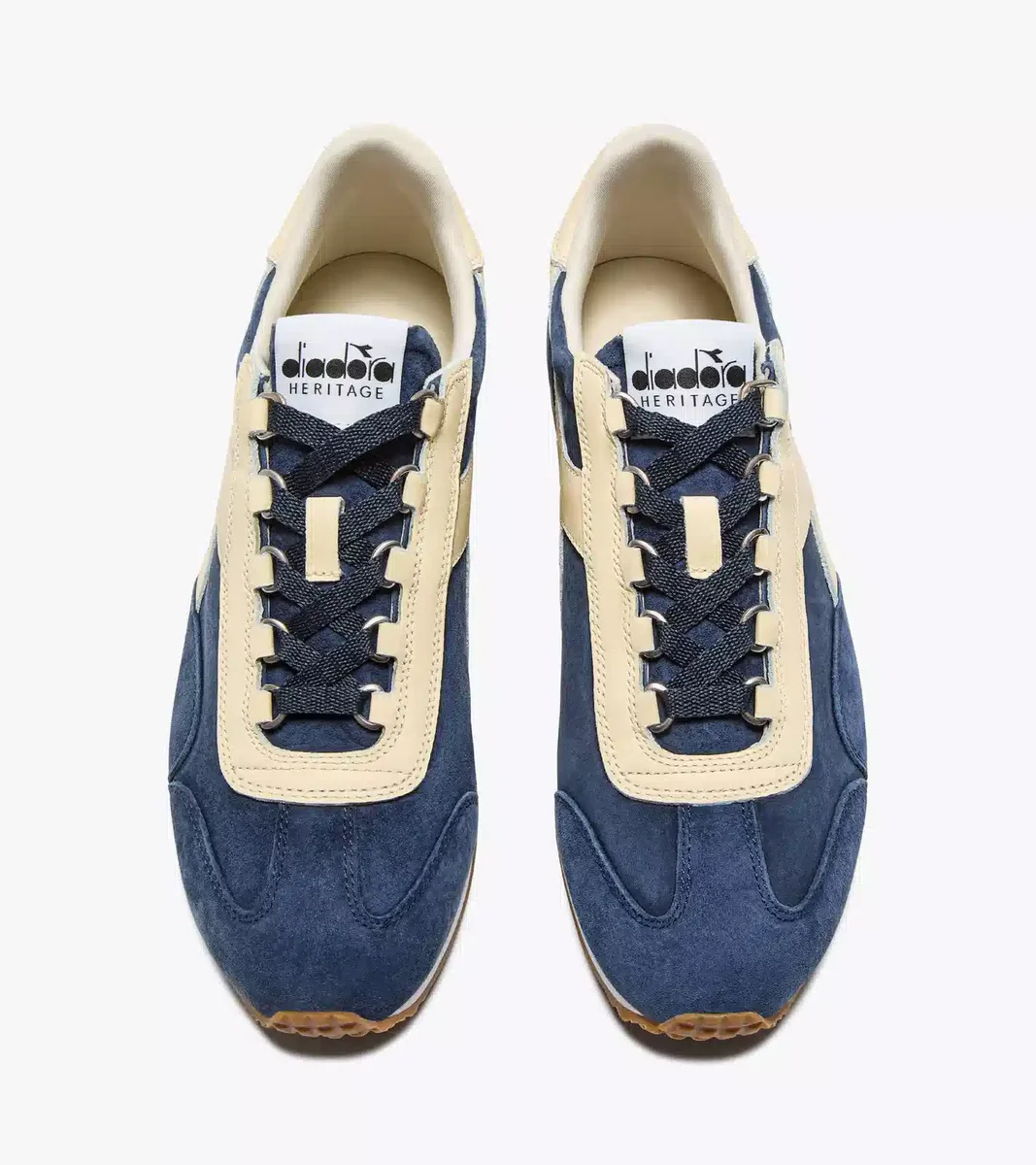 Dettaglio tipico delle sneakers Diadora Heritage, il trattamento stonewash ammorbidisce la pelle