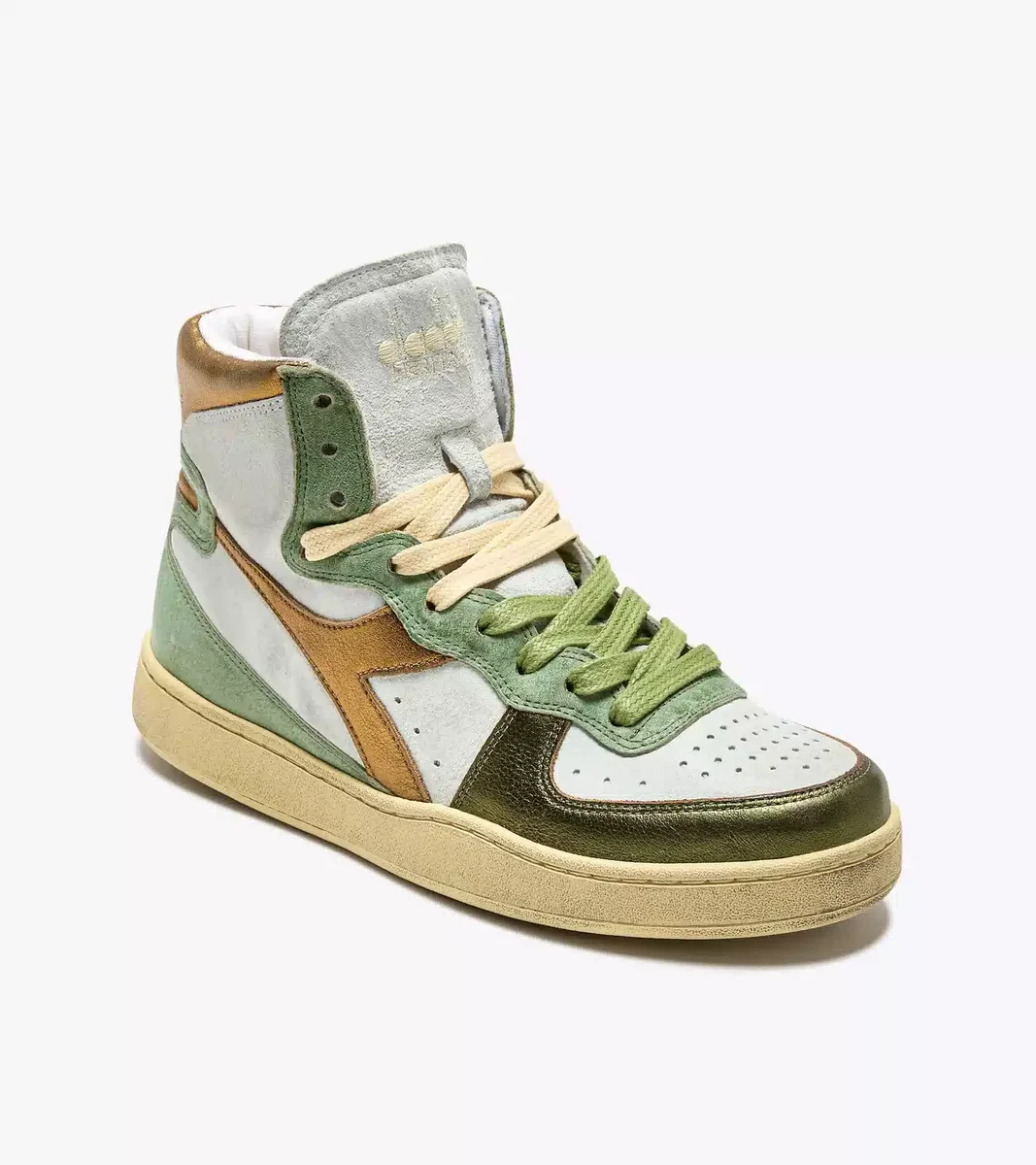 Dai primi modelli in pelle pieno fiore della fine degli anni ’70, al modello realizzato appositamente per Dino Meneghin nel 1984. La MI Basket nasce sul campo da basket. Si evolve in una sneaker Heritage dal look intramontabile. Materiali di qualità superiore. Realizzata in pelle di maiale premium e pelle laminata premium. Stone wash. Dettaglio tipico delle sneaker Diadora Heritage, il trattamento stonewash ammorbidisce la pelle. Cera.p>