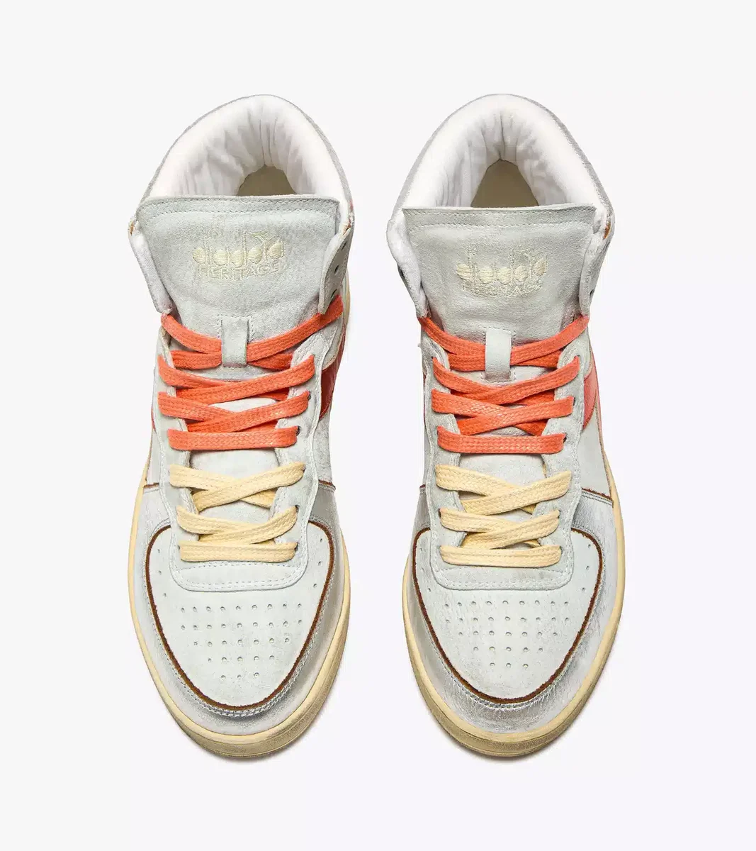 Dai primi modelli in pelle pieno fiore della fine degli anni ’70, al modello realizzato appositamente per Dino Meneghin nel 1984. La MI Basket nasce sul campo da basket. Si evolve in una sneaker Heritage dal look intramontabile. Materiali di qualità superiore. Realizzata in pelle di maiale premium e pelle laminata premium. Stone wash. Dettaglio tipico delle sneaker Diadora Heritage, il trattamento stonewash ammorbidisce la pelle. Cera.p>
