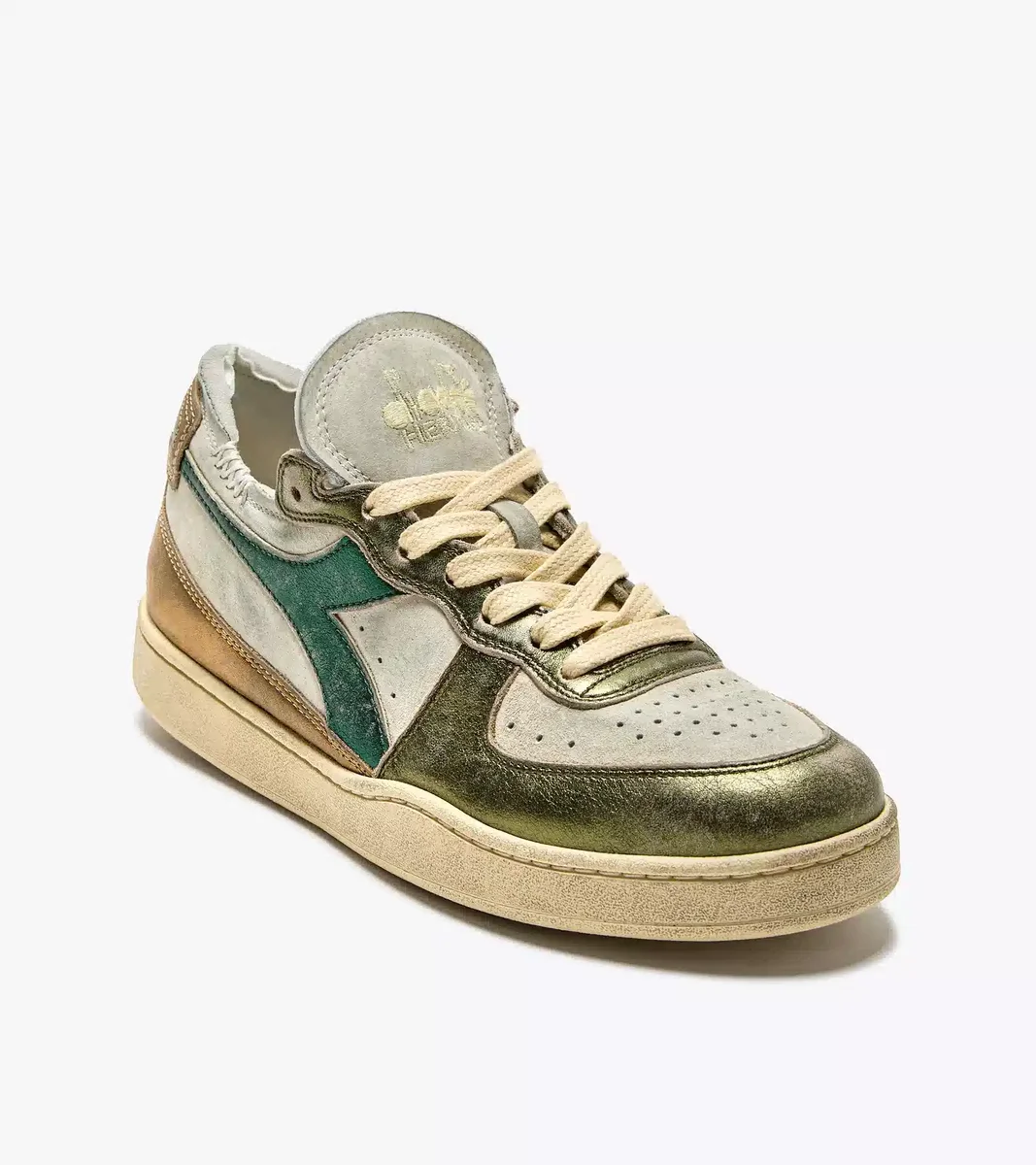 Per chi ama la MI Basket diadora nella sua versione low-cut e apprezza la fusione di materiali e texture di alta qualità, presentiamo la nuova MI Basket Row Cut Metal Pigskin Used WN. Queste sneakers casual da donna sono realizzate in pelle di maiale di alta qualità e pelle laminata di alta qualità, combinando stile e qualità. Sono sottoposte a uno speciale trattamento stonewash e rifinite con una sottile applicazione di cera, che conferisce loro un inconfondibile effetto usato.