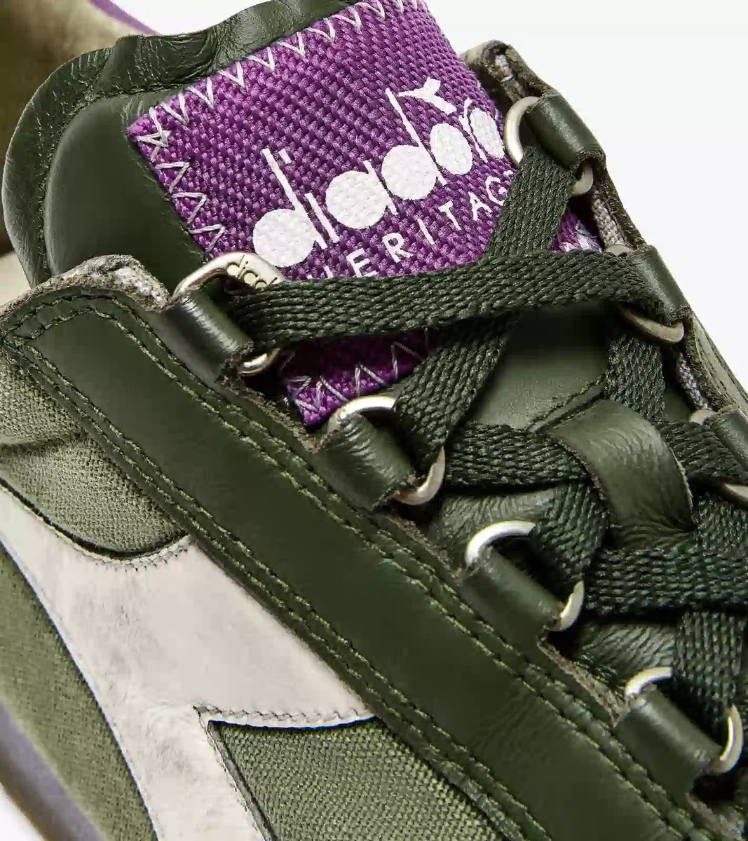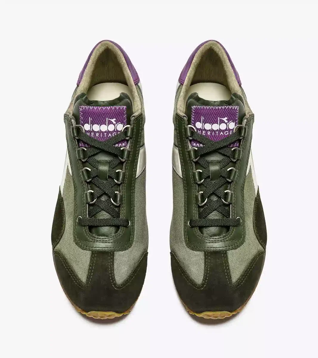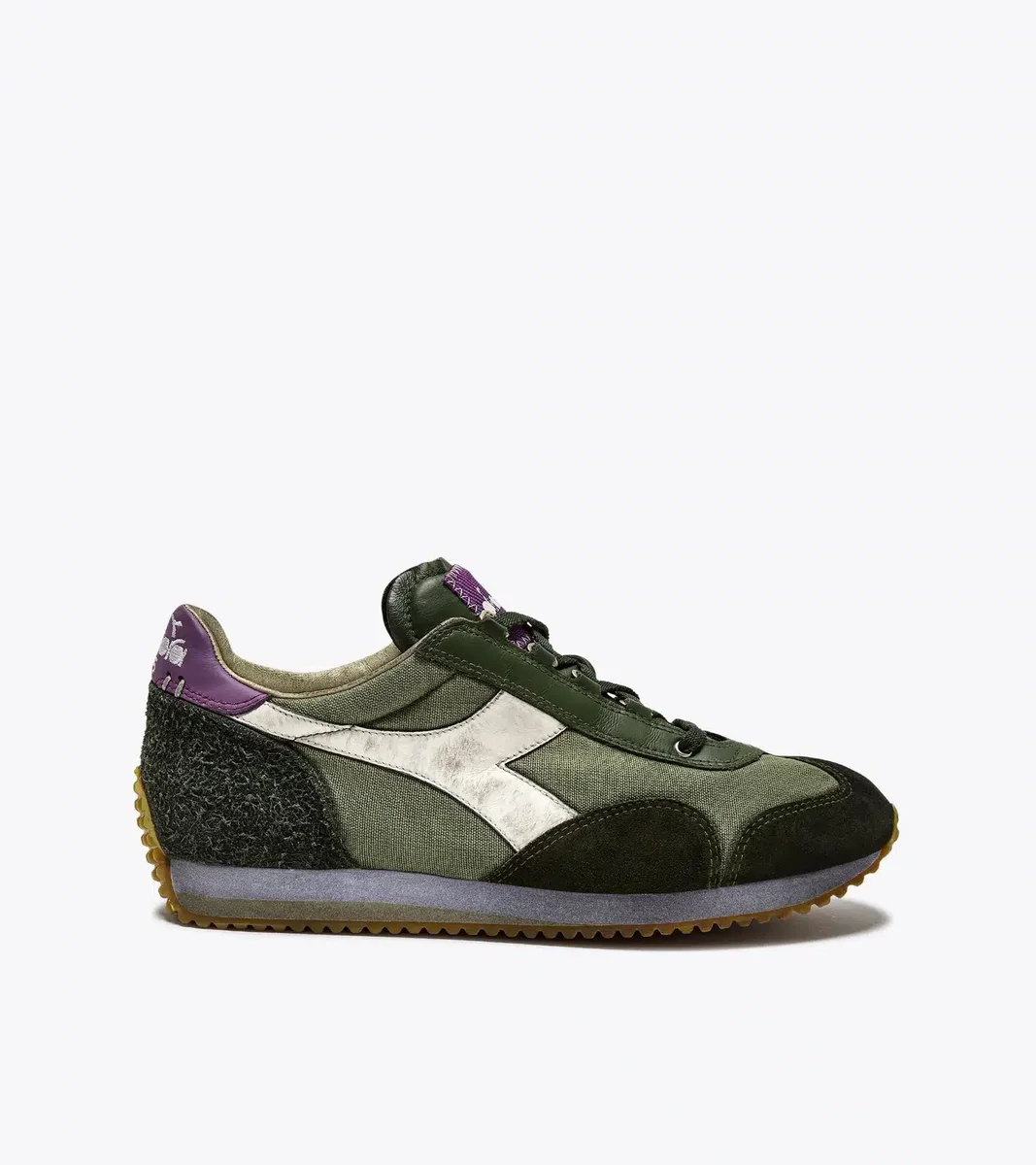 Questa sneaker Heritage si reinventa ancora una volta. Equipe H Dirty Stone Wash EVO presenta un mix di tela e pelle scamosciata con linguetta in pelle, caratterizzata da una particolare finitura stone wash. L’aspetto vissuto ne esalta il fascino intramontabile, che ricorda il fascino nostalgico degli anni ’80. Archivio 1975 Modello da running in stile anni ’70, direttamente dall’archivio Diadora 1975. Dettagli iconici, come gli occhielli in metallo, sono fedeli alla prima scarpa da ginnastica Diadora mai realizzata. Materiali di qualità superiore. Realizzata in tela e pelle scamosciata, con linguetta in pelle. Stone wash. Dettaglio tipico delle sneaker Diadora Heritage, il trattamento stonewash ammorbidisce la pelle. Effetto sporco.