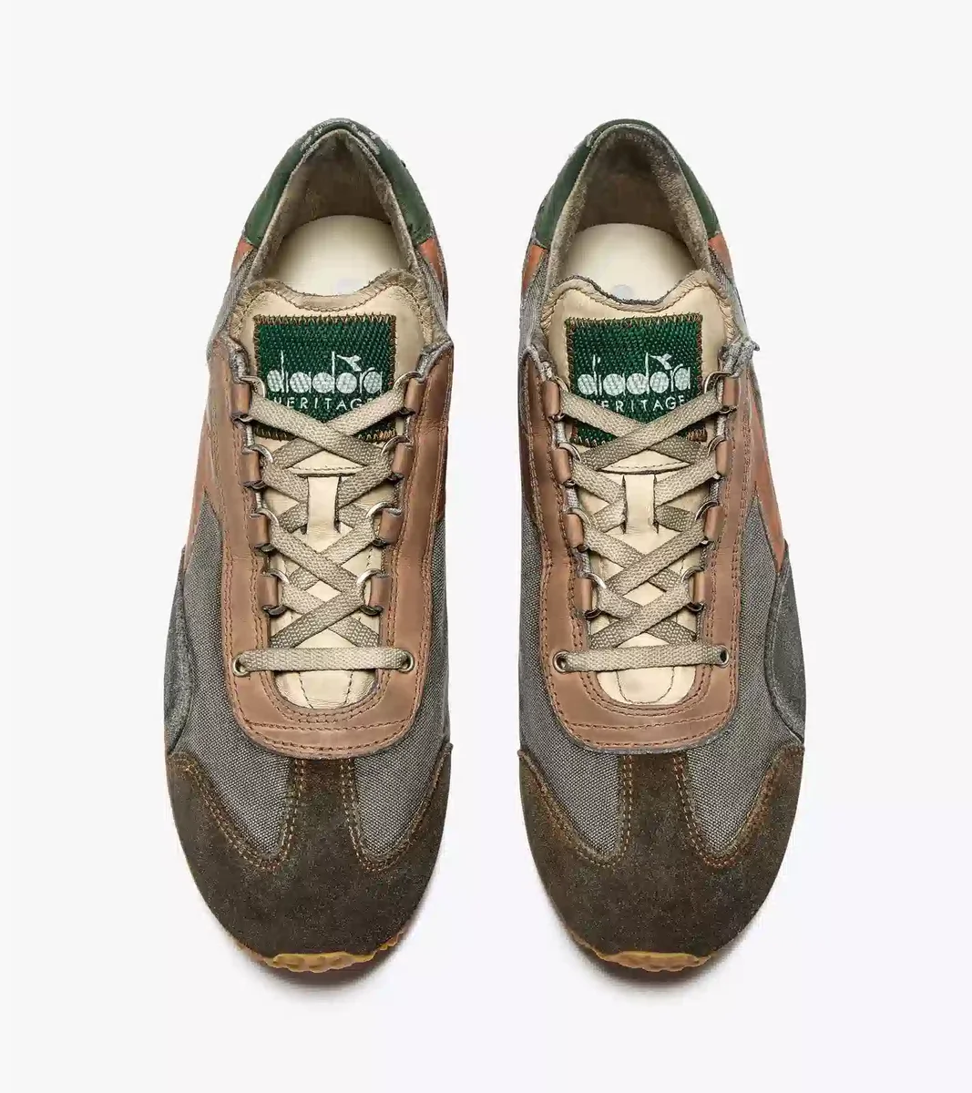 Questa sneaker Heritage si reinventa ancora una volta. Equipe H Dirty Stone Wash EVO presenta un mix di tela e pelle scamosciata con linguetta in pelle, caratterizzata da una particolare finitura stone wash. L’aspetto vissuto ne esalta il fascino intramontabile, che ricorda il fascino nostalgico degli anni ’80. Archivio 1975 Modello da running in stile anni ’70, direttamente dall’archivio Diadora 1975. Dettagli iconici, come gli occhielli in metallo, sono fedeli alla prima scarpa da ginnastica Diadora mai realizzata. Materiali di qualità superiore. Realizzata in tela e pelle scamosciata, con linguetta in pelle. Stone wash. Dettaglio tipico delle sneaker Diadora Heritage, il trattamento stonewash ammorbidisce la pelle. Effetto sporco.