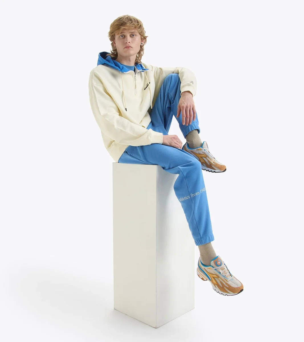 Combinando uno stile casual con elementi tecnici, la felpa con cappuccio HZ Legacy è realizzata in nylon Lamintess italiano e cotone parzialmente riciclato, certificato RCS. Il cappuccio tecnico è dotato di cordini regolabili che garantiscono protezione dal freddo. Completa di tasca a marsupio sul davanti e ricamo sul retro.