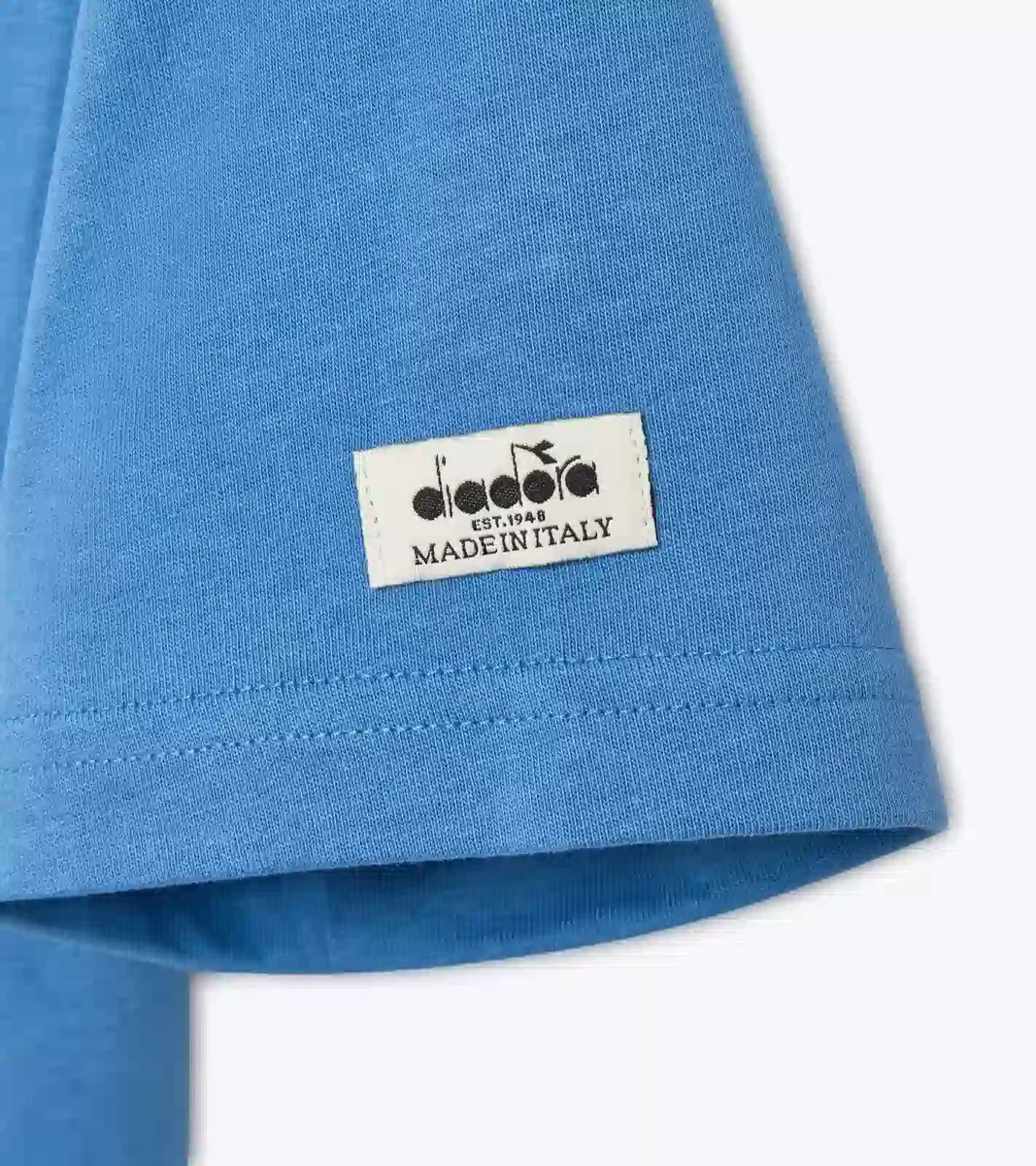 Legacy. Il patrimonio sportivo di Diadora viene rivisitato in questa capsule collection di abbigliamento sportivo Made in Italy. Questa t-shirt è realizzata in cotone riciclato al 50%, con una vestibilità comoda e un design unisex. Disponibile in diverse varianti di colore, è impreziosita da un’etichetta personalizzata appositamente progettata per la collezione Legacy.