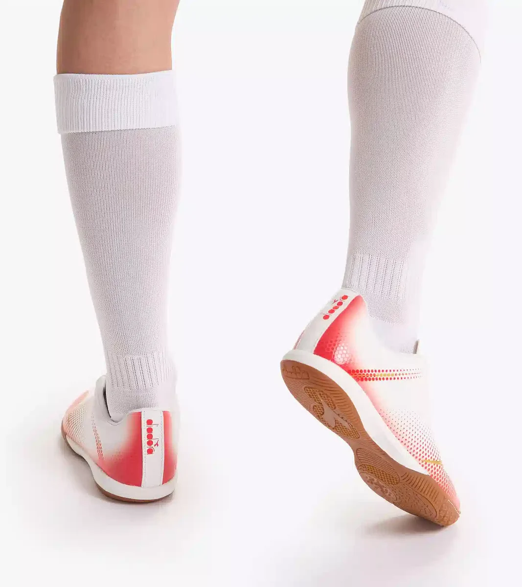 Bomber IDR è la scarpa da calcetto unisex realizzata in tessuto “touch&feel” resistente all’acqua. Fodera anti-allungamento e fodera antiscivolo in PU sul tallone. Soletta con punti di flessione sulla pianta del piede. Modello adatto per campi indoor e in parquet.