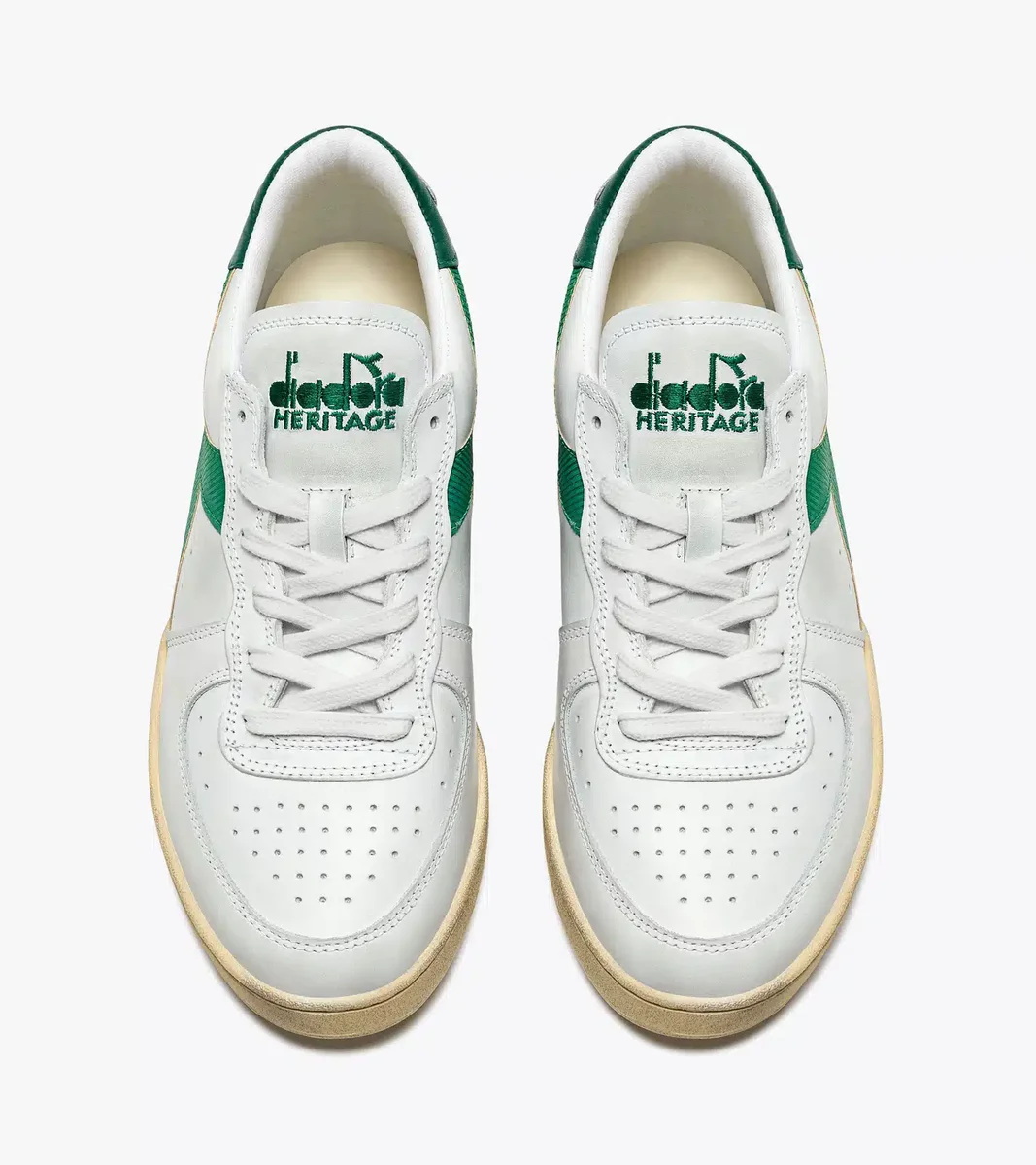 Dai primi modelli in pelle pieno fiore della fine degli anni ’70, al modello realizzato appositamente per Dino Meneghin nel 1984. La MI Basket nasce sul campo da basket. Si evolve in una sneaker Heritage dal look intramontabile. Materiali di qualità superiore. Realizzata in pelle pieno fiore. Stone wash. Dettaglio tipico delle sneaker Diadora Heritage, il trattamento stonewash ammorbidisce la pelle. Cera.p>