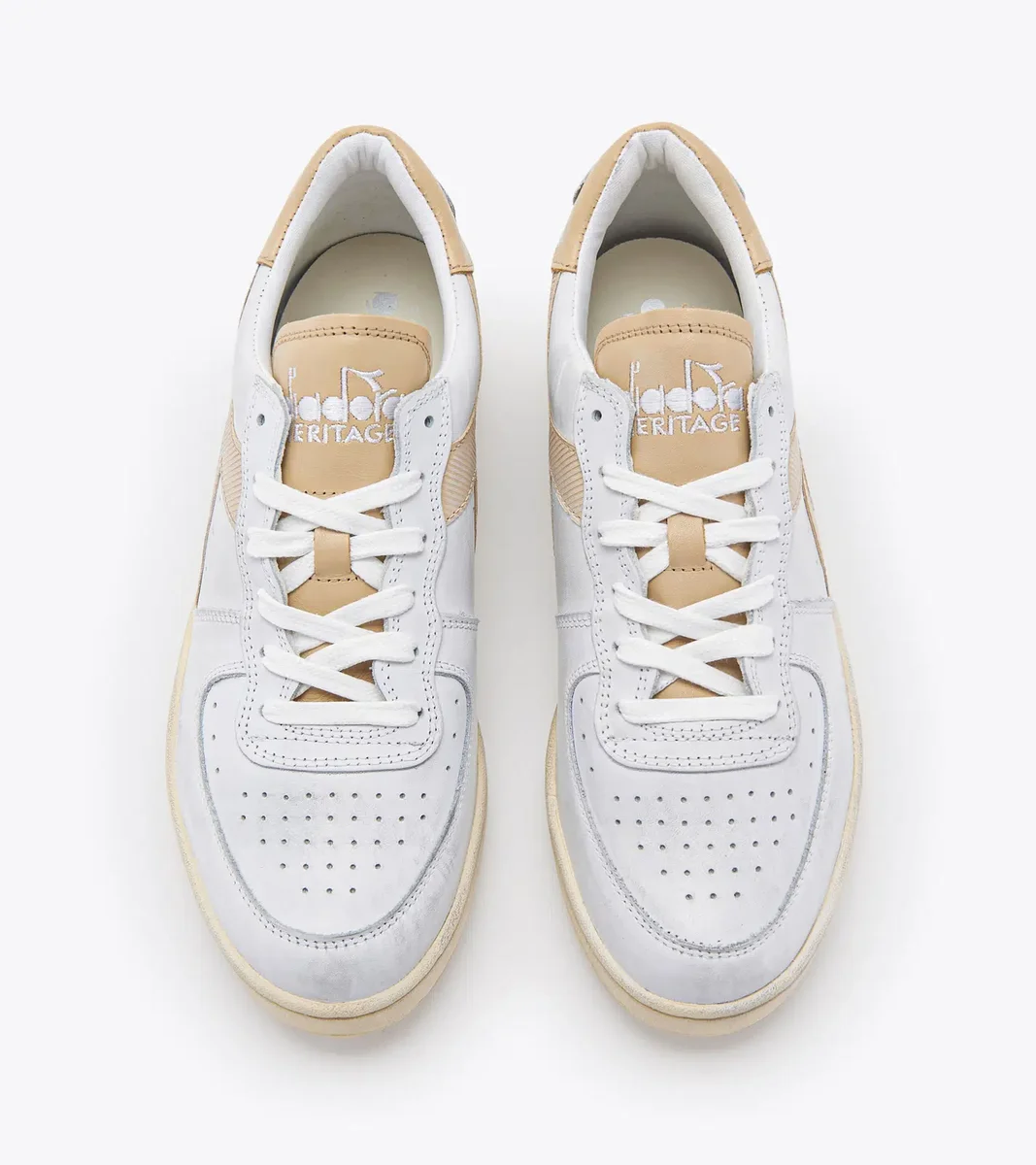 Dai primi modelli in pelle pieno fiore della fine degli anni ’70, al modello realizzato appositamente per Dino Meneghin nel 1984. La MI Basket nasce sul campo da basket. Si evolve in una sneaker Heritage dal look intramontabile. Materiali di qualità superiore. Realizzata in pelle pieno fiore. Stone wash. Dettaglio tipico delle sneaker Diadora Heritage, il trattamento stonewash ammorbidisce la pelle. Cera.p>
