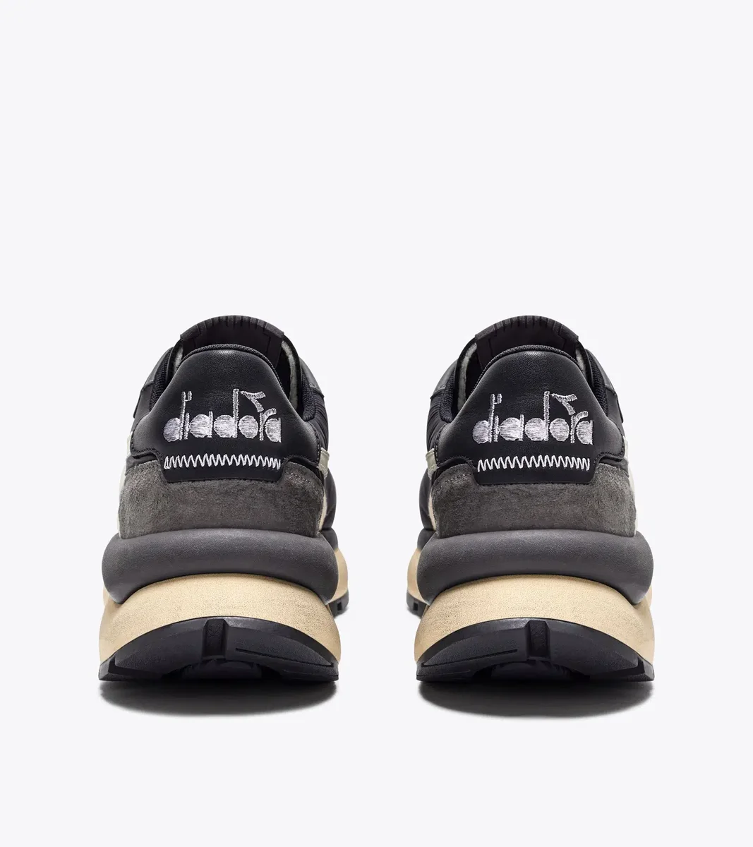Tomaia OG della scarpa da pista Diadora del 1983. Suola con stabilizzatore oversize per un look più contemporaneo