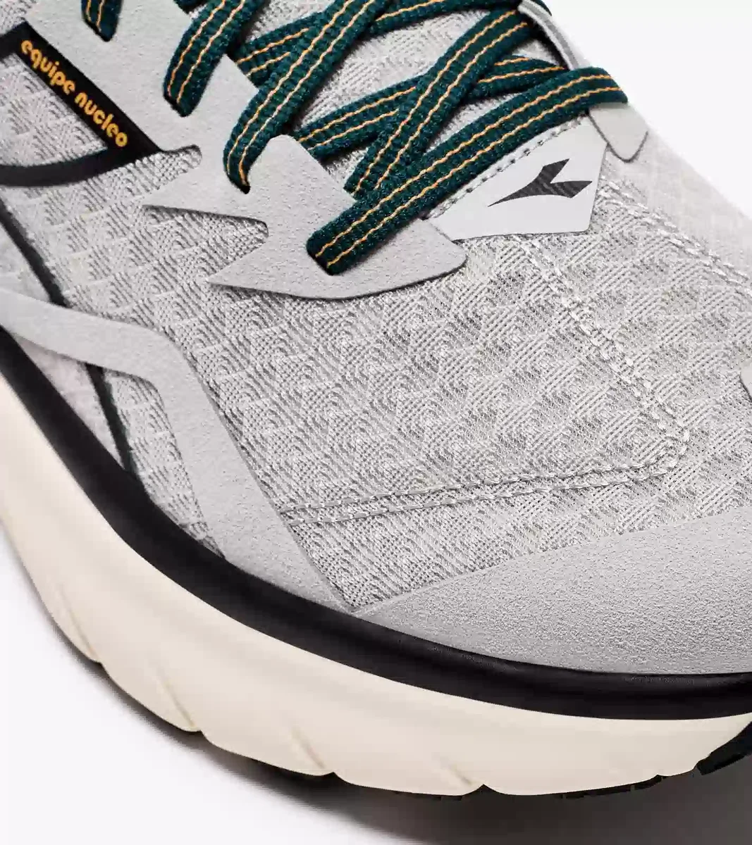 Equipe Nucleo è l’ultima scarpa da corsa progettata per i runner urbani che vivono la città come un parco giochi su cui allenarsi, pensando alla prossima sfida da affrontare. “Nucleo” è la caratteristica principale: l’intersuola, cuore di questa sneaker che si distingue per la sua reattività e leggerezza. L’intersuola realizzata con la nostra tecnologia dd anima è progettata per offrire le migliori prestazioni, garantendo al contempo protezione e stabilità al piede. La tecnologia dd anima garantisce un elevato grado di ammortizzazione; la mescola High Rebound Compound aumenta la reattività dell’intersuola del 30% e ne riduce il peso del 20%. La suola è realizzata in gomma antiabrasiva, con la speciale mescola Duratech 5000 resistente all’acqua sul tallone. Caratteristiche principali: