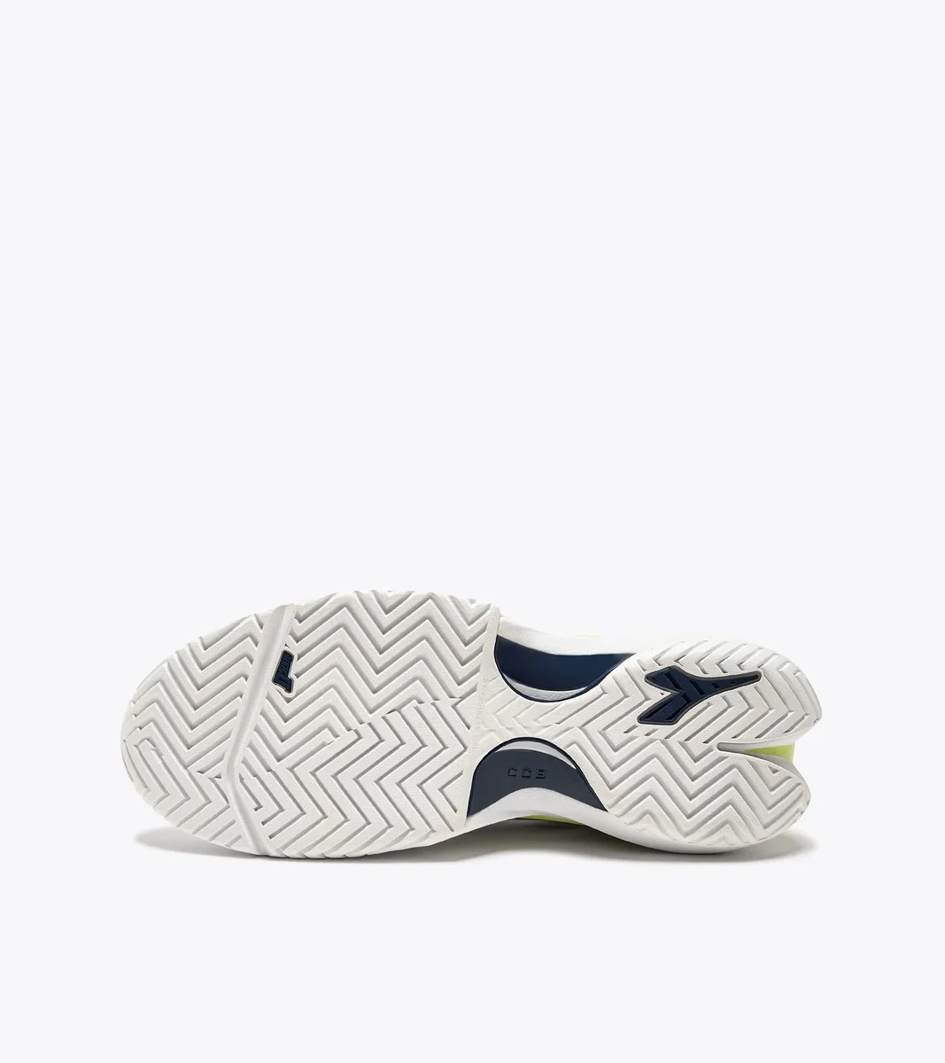 Finale AG è la scarpa da tennis da uomo progettata per superfici dure o campi in terra battuta. Tomaia realizzata in SuprellTech, air mesh e p.u. transfer per un’eccellente stabilità, traspirabilità e comfort, morbida fodera in lycra con design antiscivolo. Soletta anatomica e antiurto in schiuma EVA; intersuola in EVA leggera e rinforzo dell’arco plantare per migliorare la stabilità. Suola in gomma con speciale mescola Duratech 5000 resistente all’usura. Utilizzo: