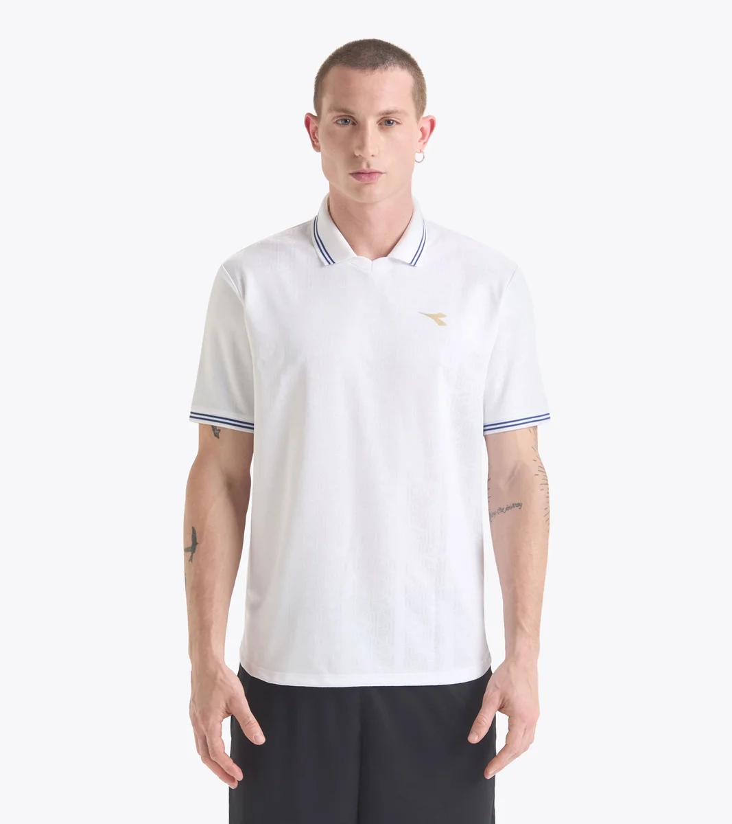 Cattura l’energia degli anni ’90 con la maglia Match Scudetto. Ispirata alle maglie da calcio Diadora di quell’epoca, presenta un colletto polo senza bottoni per un comfort elevato e strisce a contrasto. Questo stile classico si estende ai polsini, conferendo un look intramontabile al campo. Realizzata in poliestere e tessuto jacquard, resa unica da loghi e elementi grafici a contrasto.